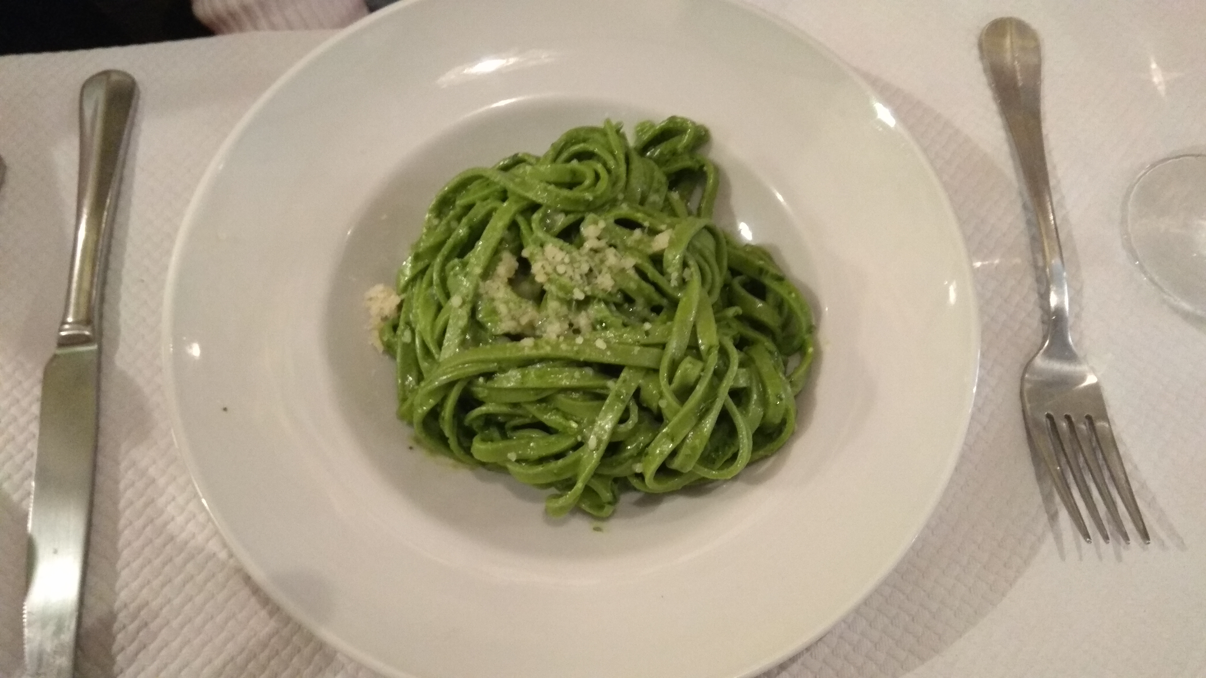 Excellentes tagliatelles au pistou ! De plus, le gaspacho de concombre en entrée était très savoureux et le service était très bon.