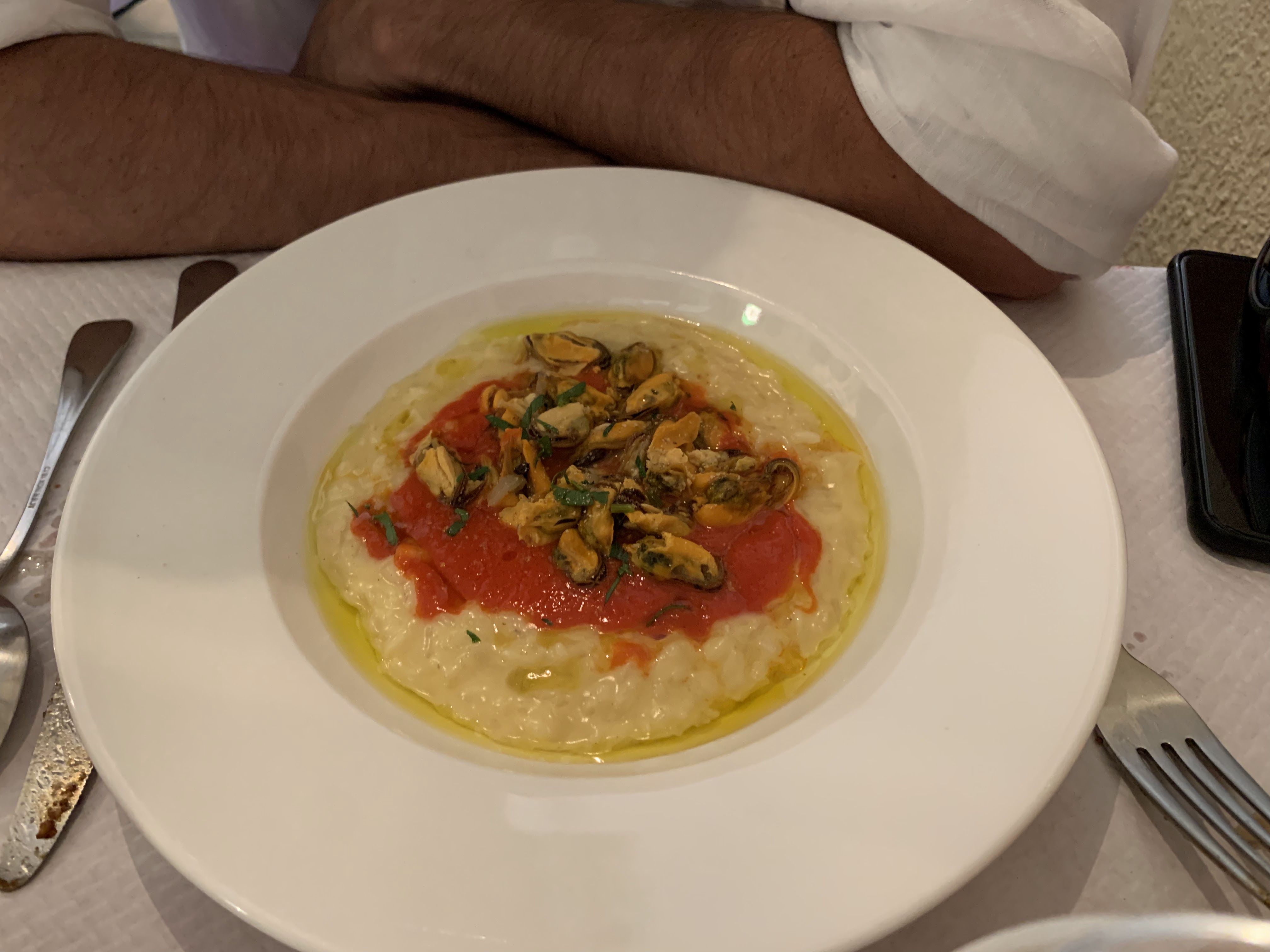 Nous avons pris des moules cuites au four en entrée. C'était fantastique. Les plats principaux étaient des pâtes au pesto et une sorte de ragoût de bœuf. Les deux étaient tout simplement OK. Timamisu pour la finale était très sympa.