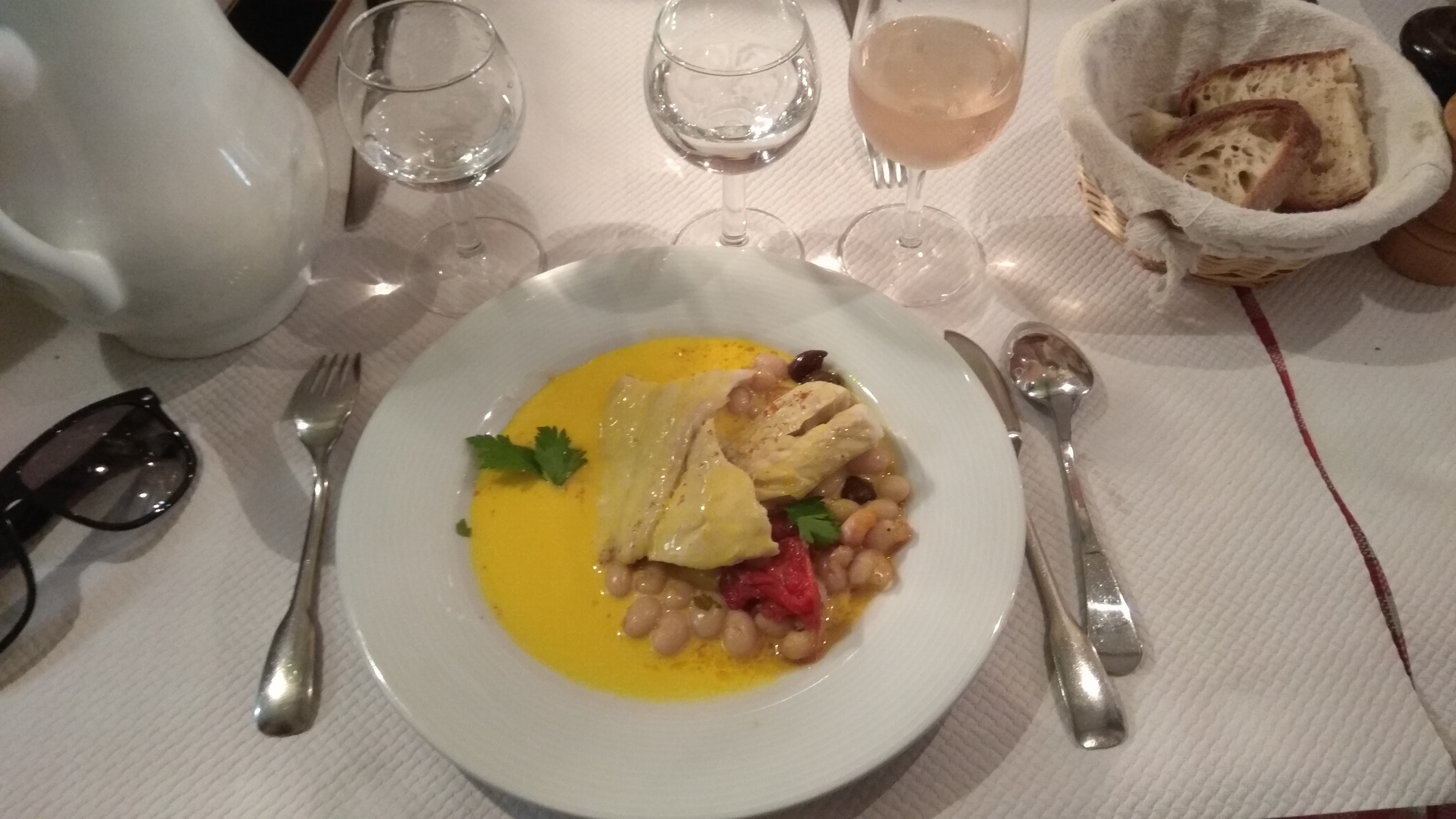 Très bonne cuisine française ! Malheureusement, la douelle à la niçoise n'était pas tout à fait à la hauteur. Mais le dessert était incroyablement bon - et le vin aussi ! :)