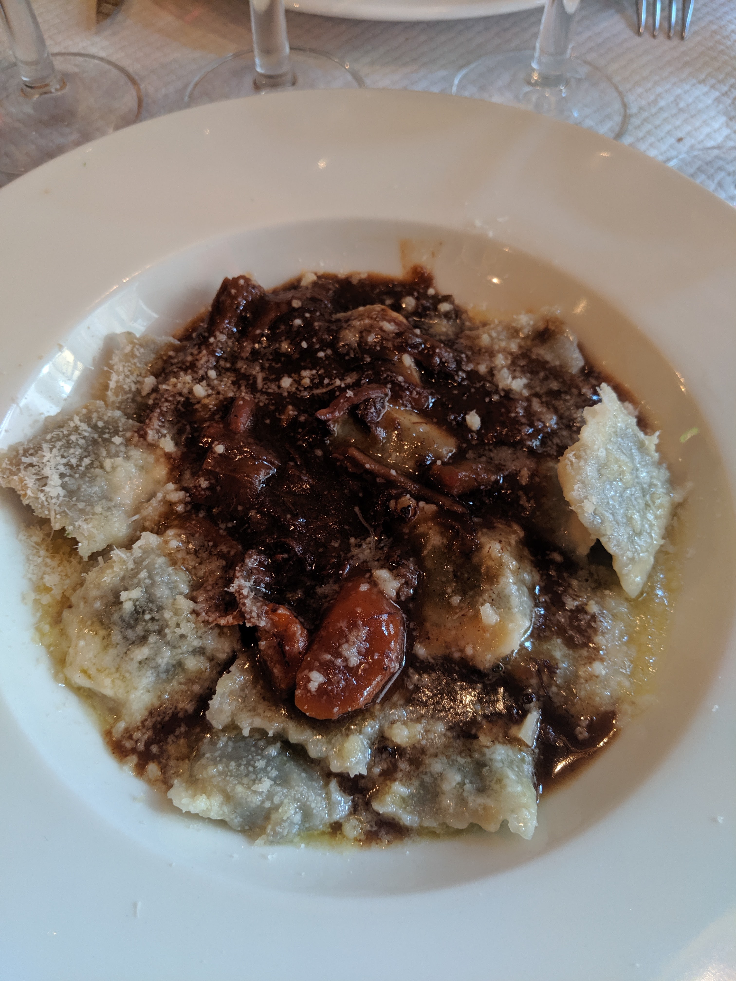 La nourriture était incroyablement délicieuse ! Si vous êtes habitué aux pâtes italiennes al dente, je suppose que vous devez les demander. Sinon, vous l'obtiendrez plus cuit qu'al dente. Le dessert aux figues peut être amélioré. Le sirop était trop liquide. Mais dans l’ensemble, l’expérience en valait la peine ! Le personnel était super gentil et gentil.