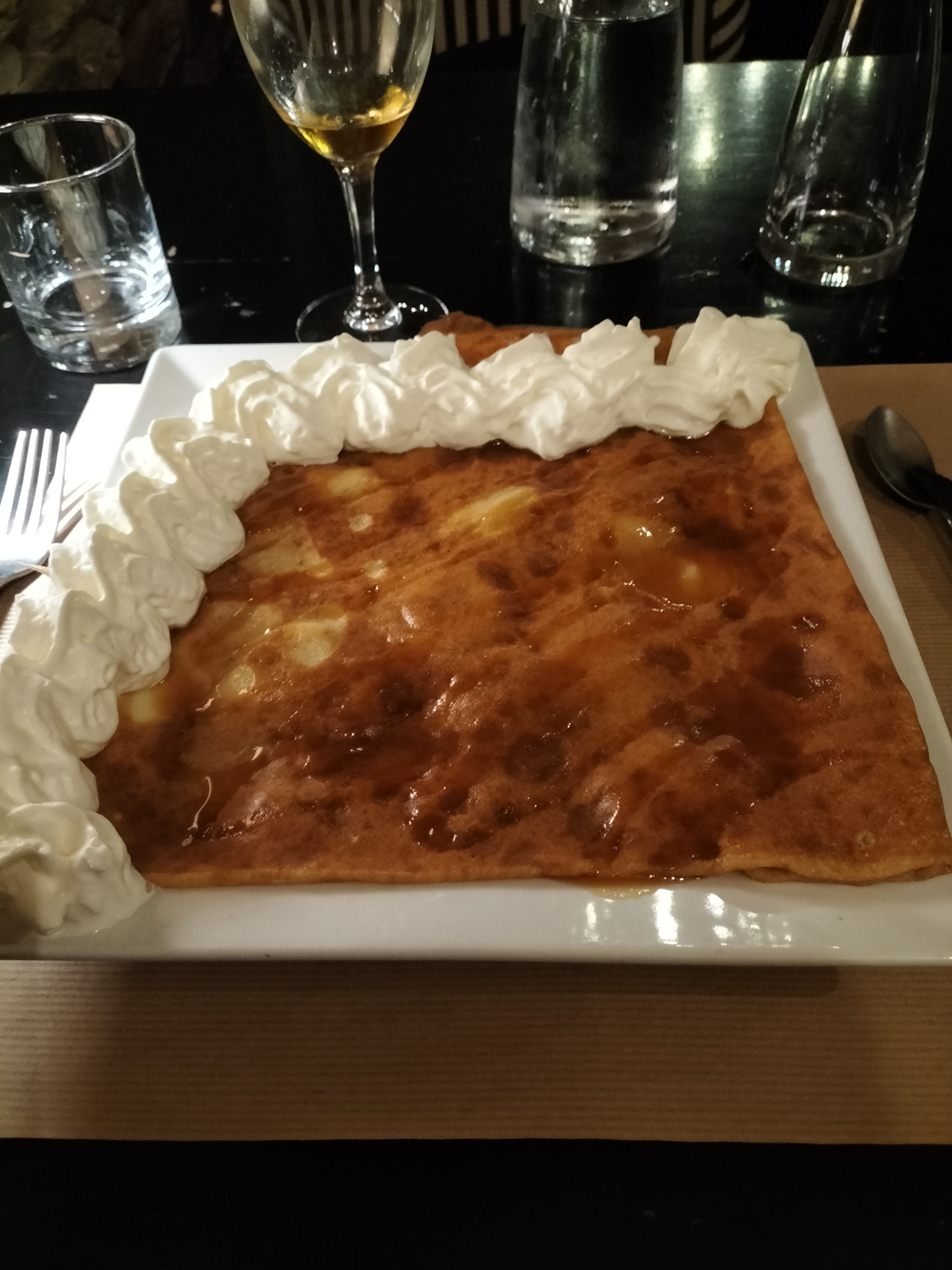Un petit couac dans le service ce dimanche qui aurait pu nous faire partir. Mais les crêpes sont ici tellement bonnes que nous sommes restés. Et en plus, très gênée, la patronne nous a offert le cidre. Allez-y les yeux fermés !