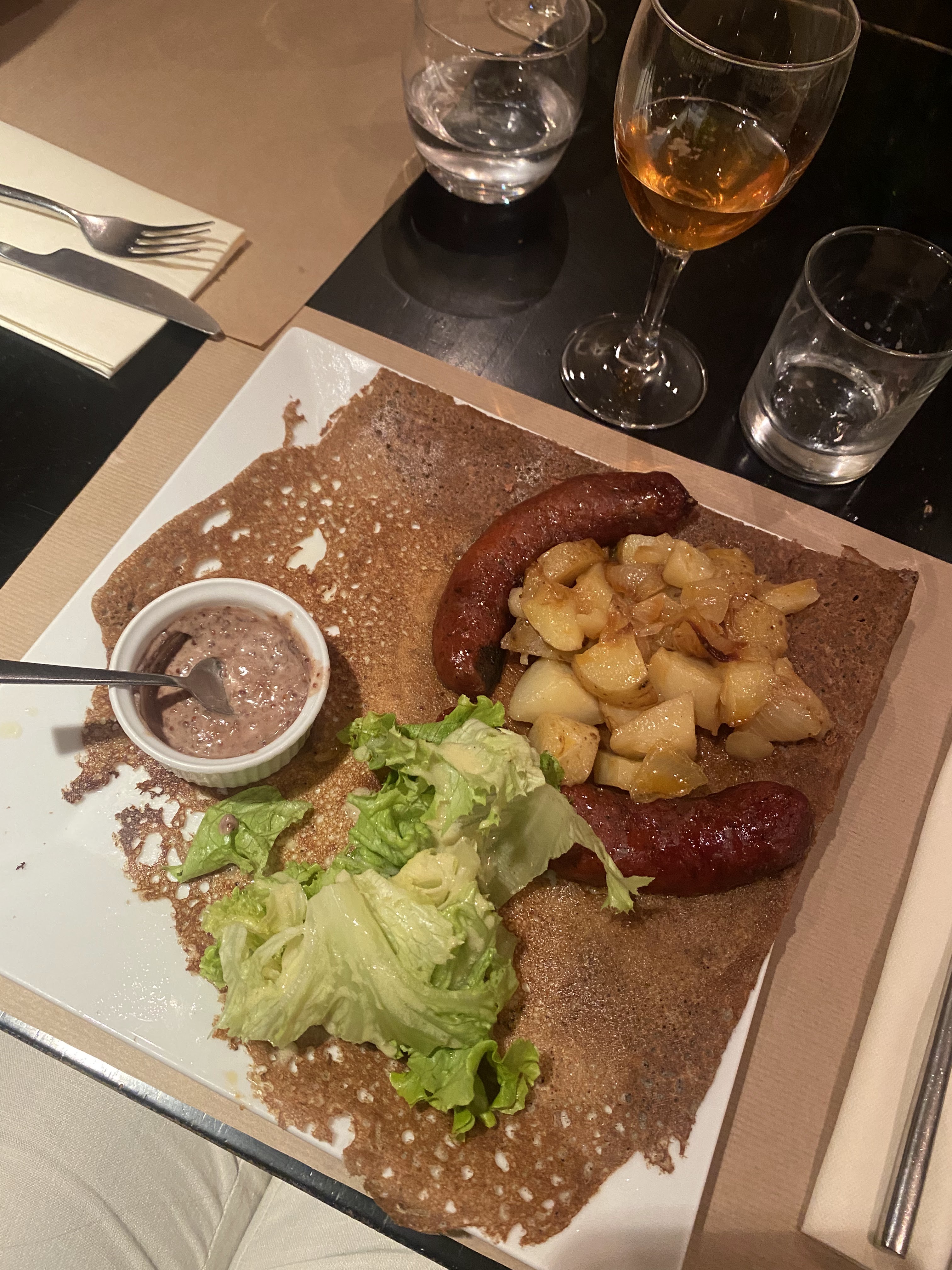 Réservation obligatoire. Notre serveuse était très gentille. La sortie des plats est longue. Les crêpes sont bonnes mais rien d’extraordinaire. Celle à la saucisse de molène était très grasse.