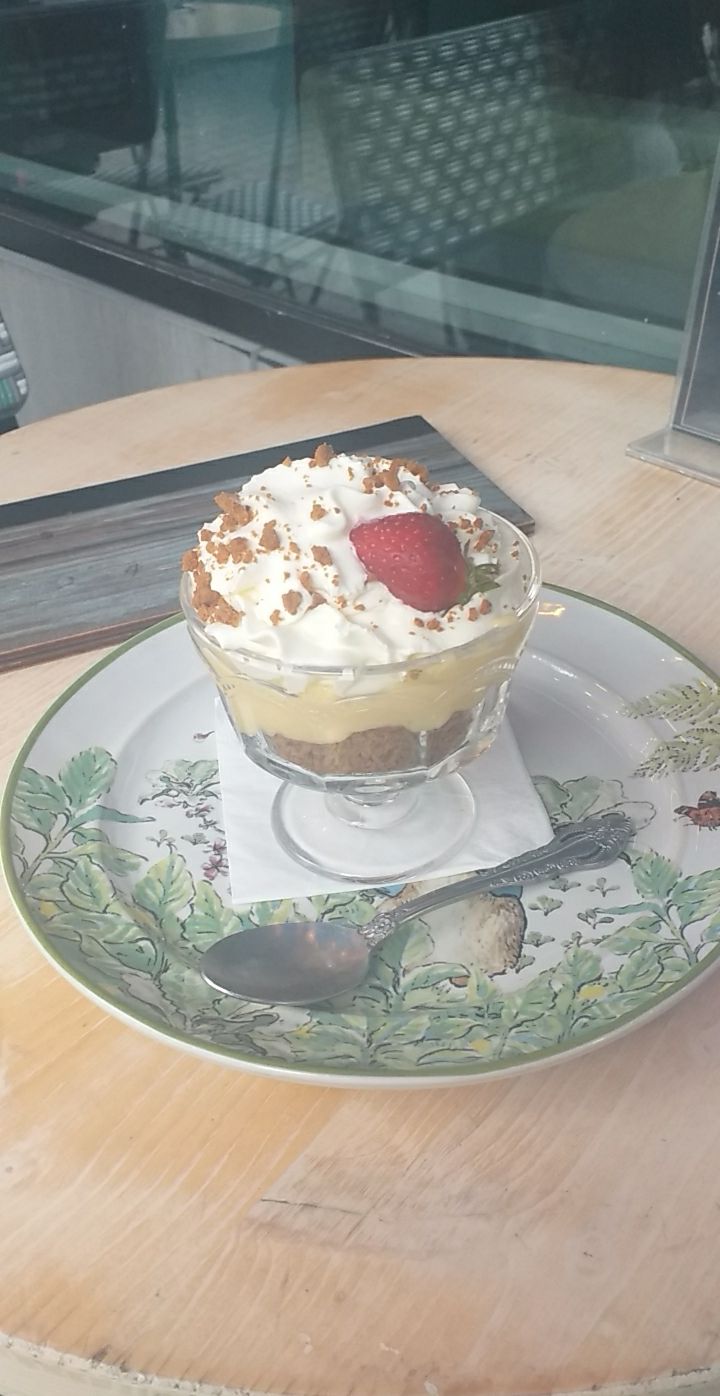 L’endroit est sympa, le service est bien. Le plat était bon (bien que les pommes de terre ne soient pas super bien cuites) et bien présenté mais j’ai été très déçue du dessert. En base du spéculos grossièrement cassé, un lemon curd au milieu et de la chantilly (pas une meringue) par dessus. Ça mérite d’être retravaillé. En plus, notre réservation n’avait pas été prise en compte et notre groupe a du être séparé.