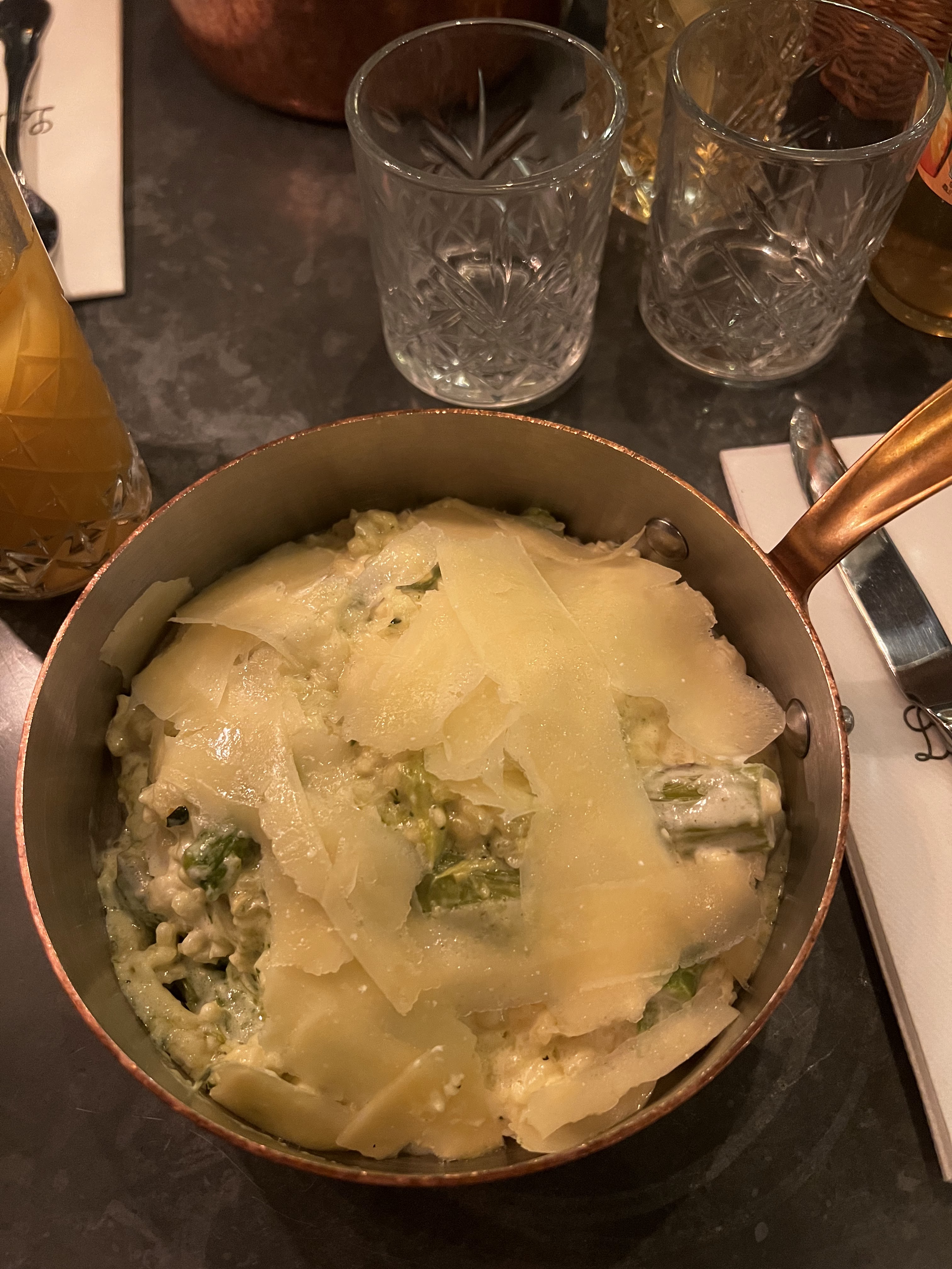 Nous avons déjeuné en terrasse/véranda et tout était délicieux ! J’ai pris un risotto aux Saint-Jacques.. c’était savoureux, copieux, en bref, un des meilleurs risotto que j’ai mangé ! Service impeccable, jus green très bon!