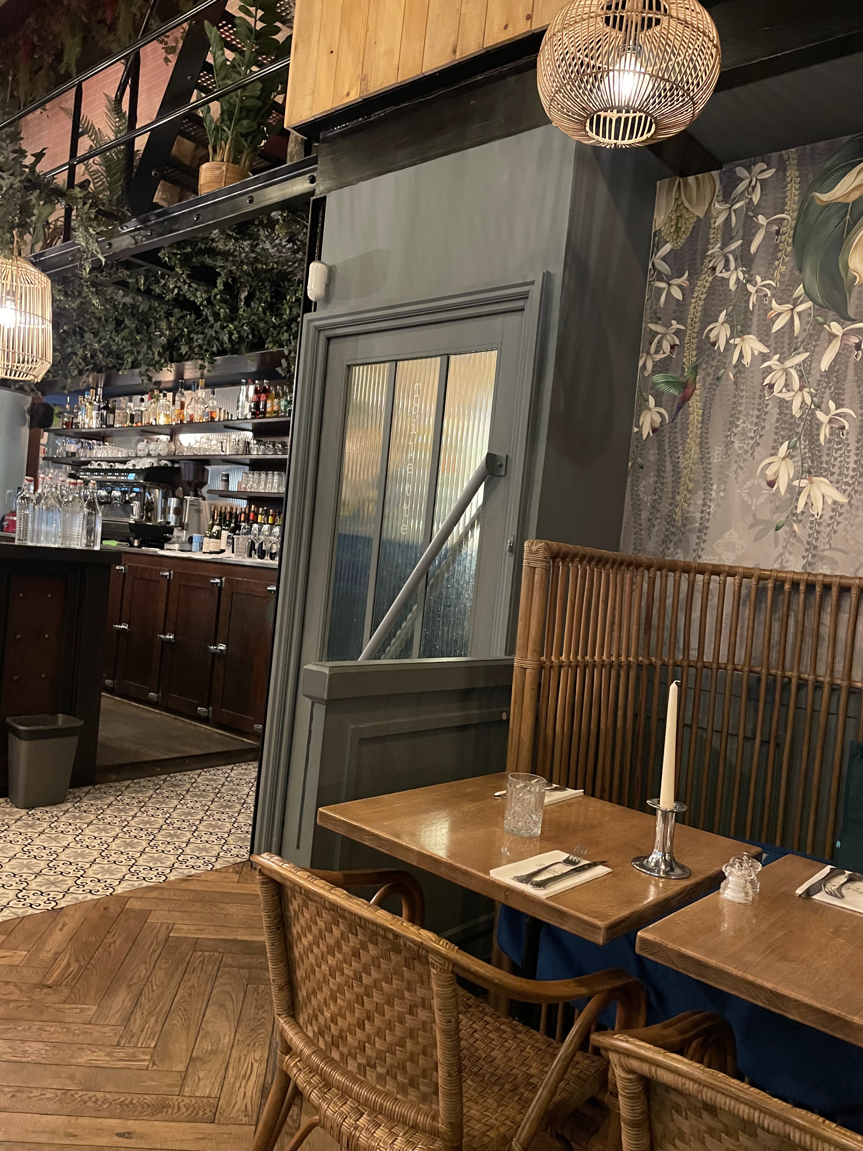 Loulou de banlieue mais version chic . Très joli décor mêlant feuillage, luminaires en rotin et tuyaux industriels. A la carte de bons classiques comme on aime de l’œuf mayo au steak tartare pour des prix raisonnables. Dommage de devoir renvoyer des frites froides et de constater que l’autre garniture du tartare (salade/crudités) est la même que pour l’entrée, le St Félicien pané. Le poulet quand à lui souffre de ne pas avoir été assez arrosé …. A signaler car de plus en plus rare: des vins à partir 22€. Un bon point pour la gentillesse de notre serveur Thomas!