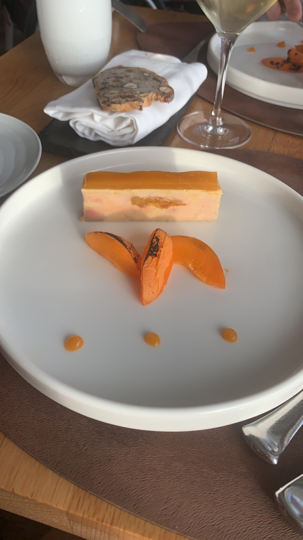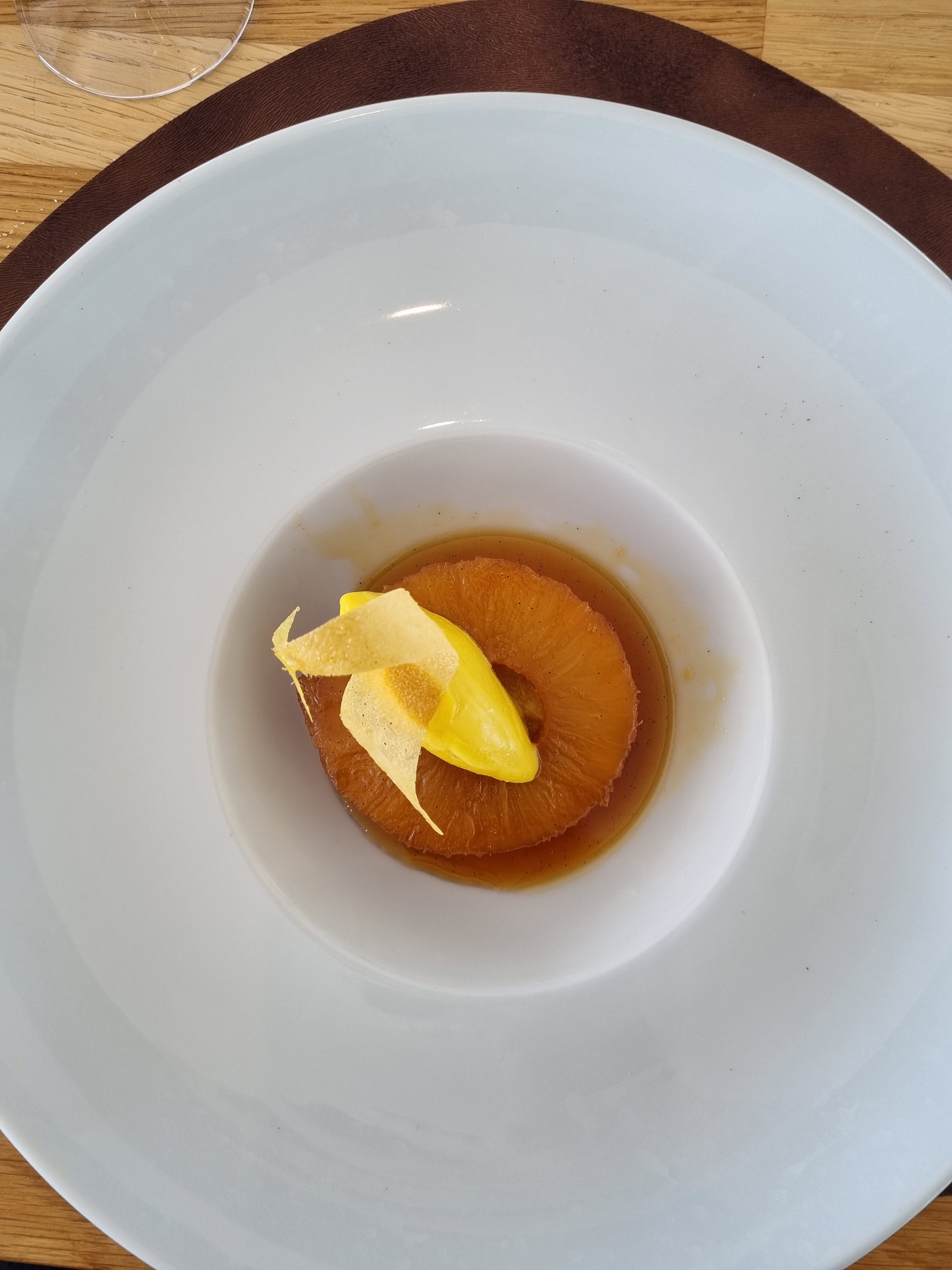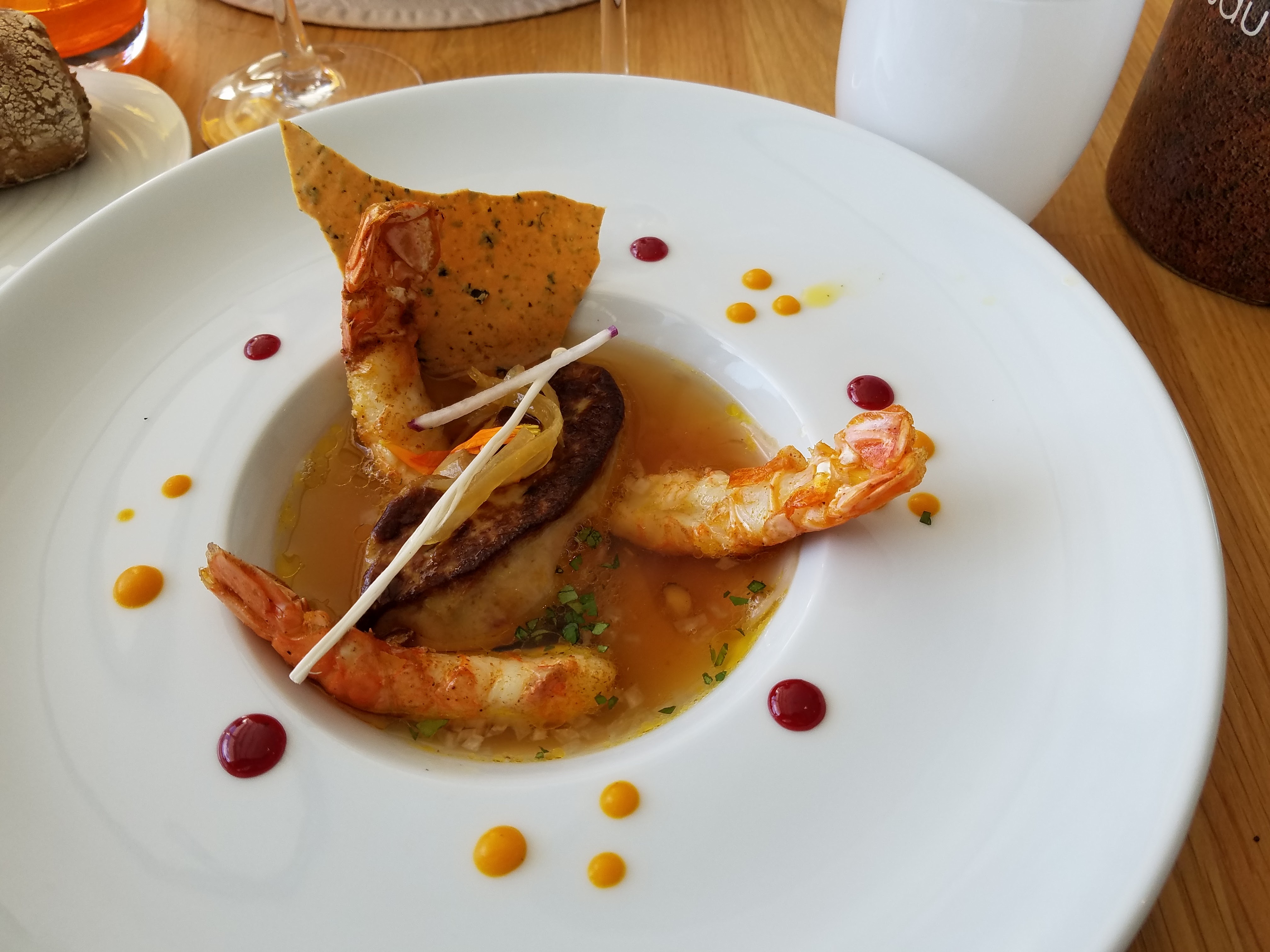 Lieu chic, cadre hyper agréable personnel charmant mais cuisine trop élaborée j en suis ressortis j avais faim... Fois gras n avait plus le gout du fois gras St Jacques froides dans l assiette et sauce dans le dessert ananas pas terrible
