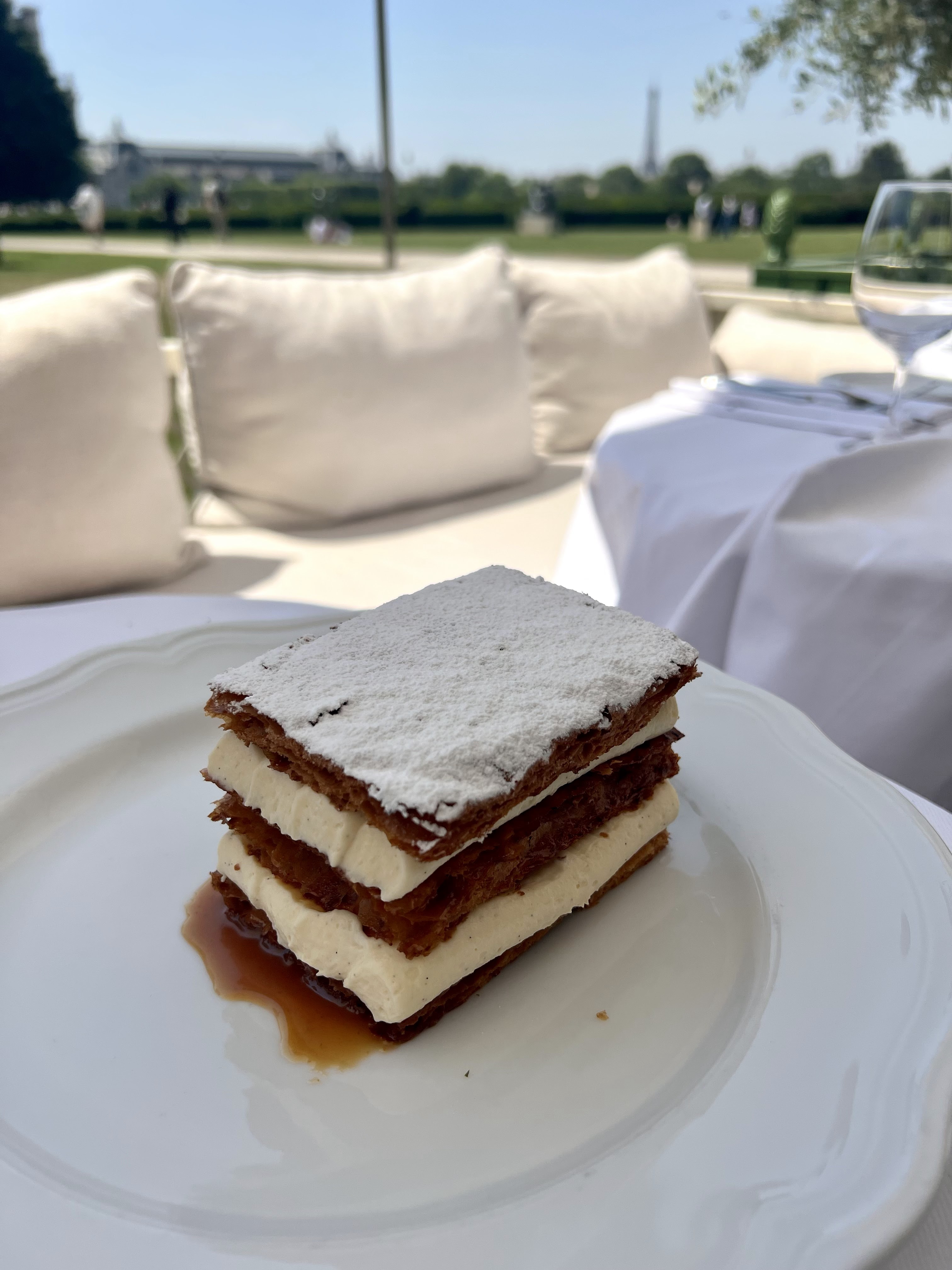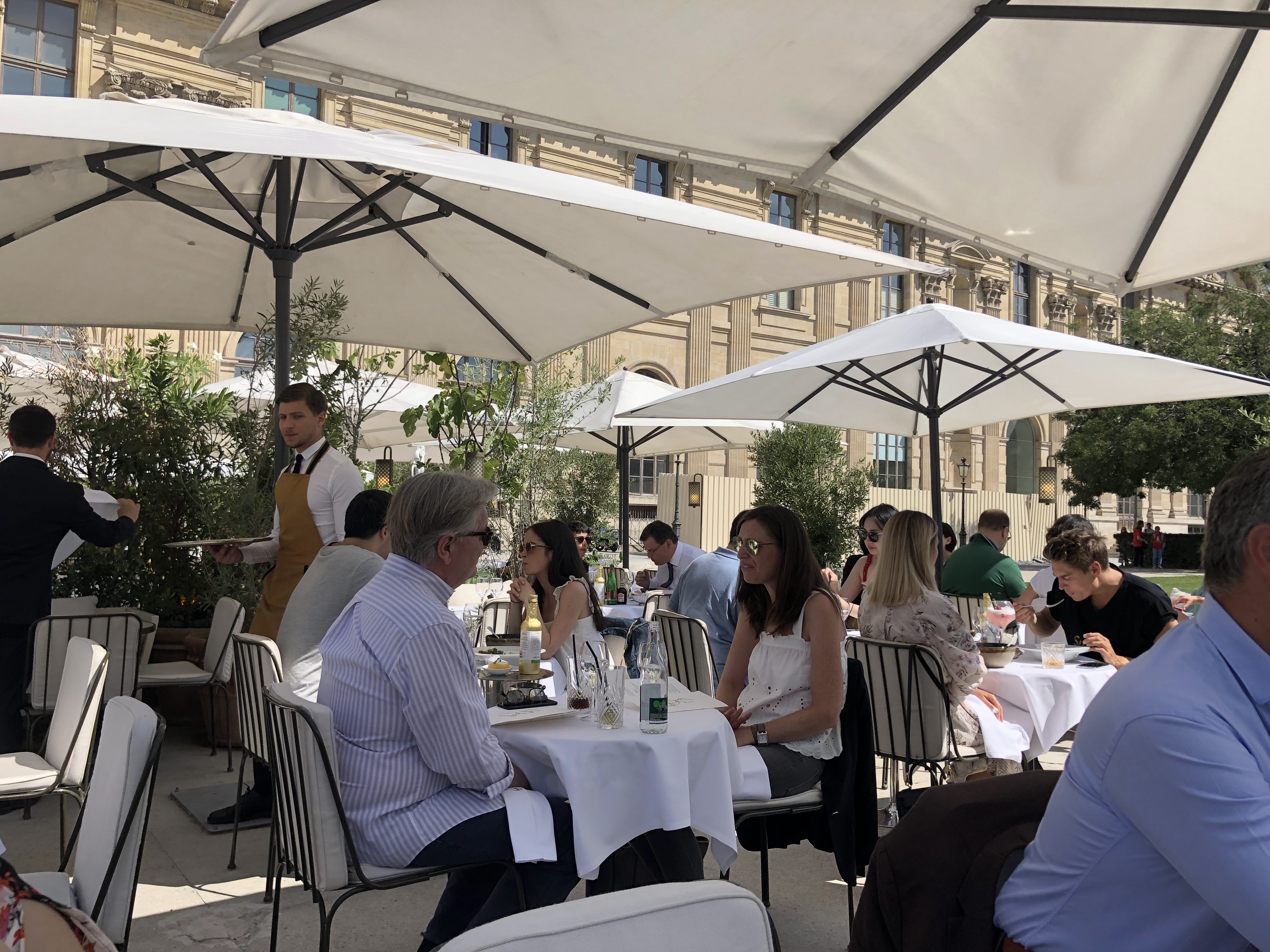 Excellent !! Le cadre est magnifique, surtout s'il fait beau : dépaysement total et belle vue sur la pyramide du louvre et la pelouse ded tuileries sans oublier la tour Eiffel. Personnel attentionné et au petits soins. Les plats sont tout simplement divins