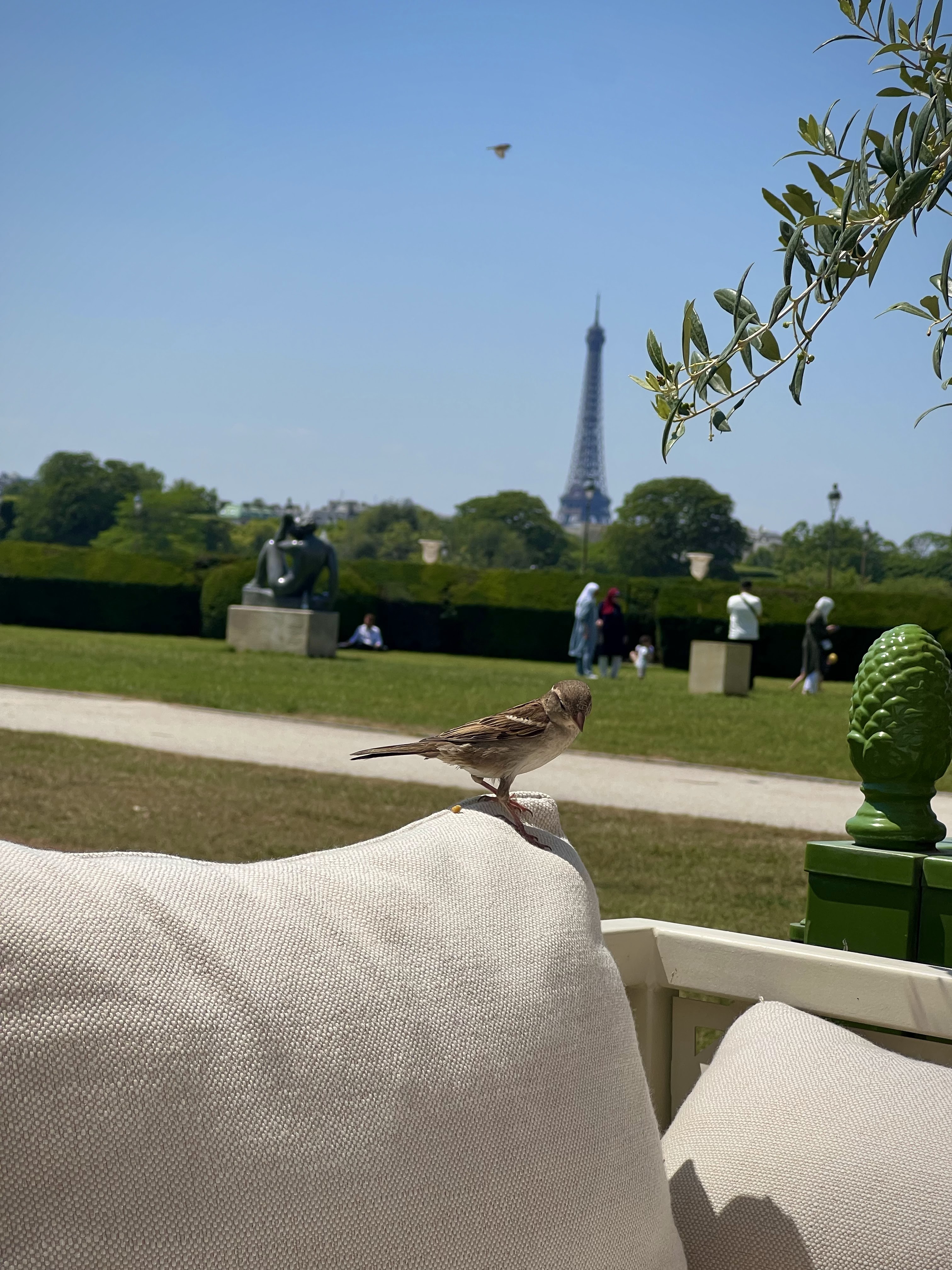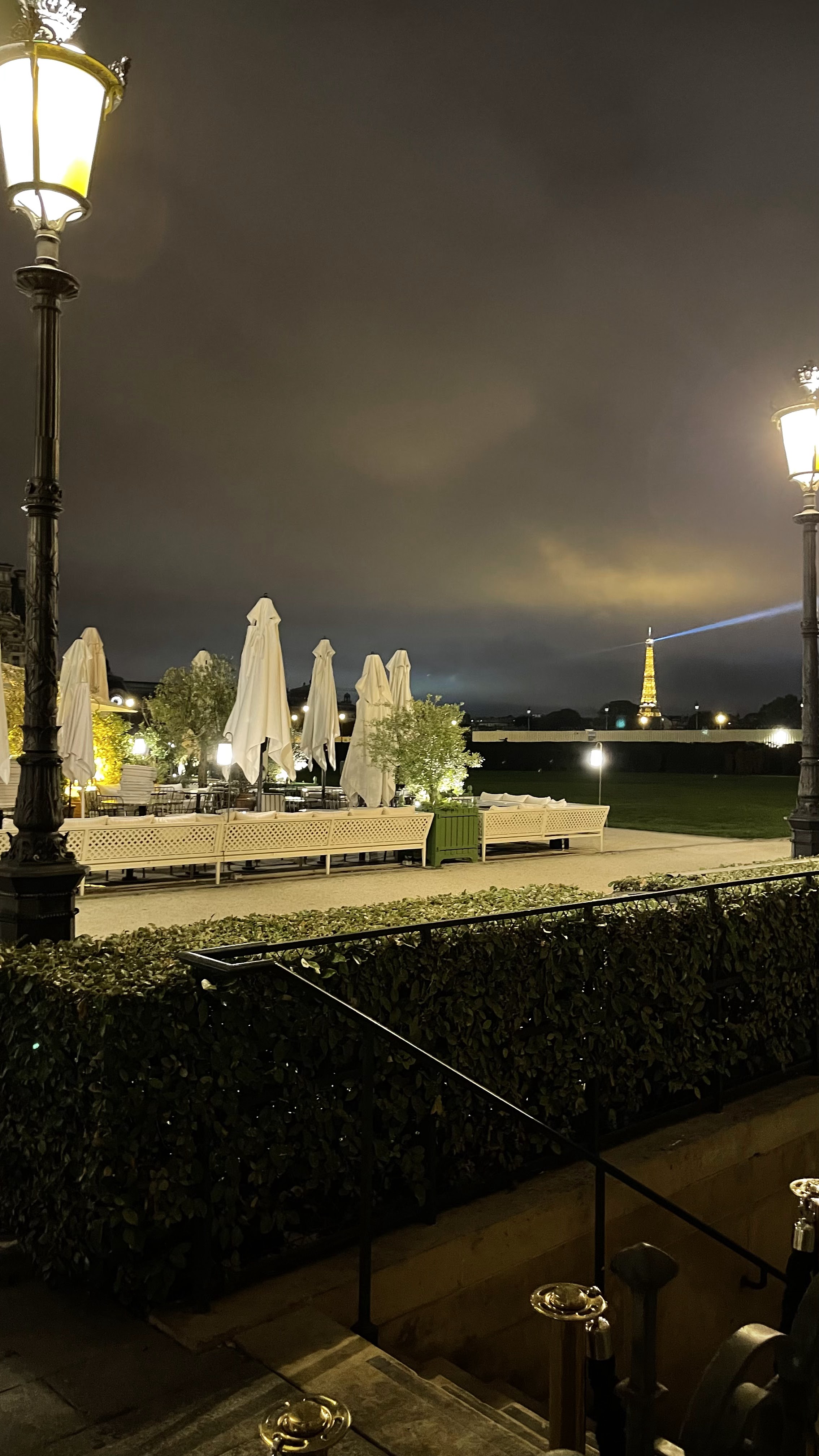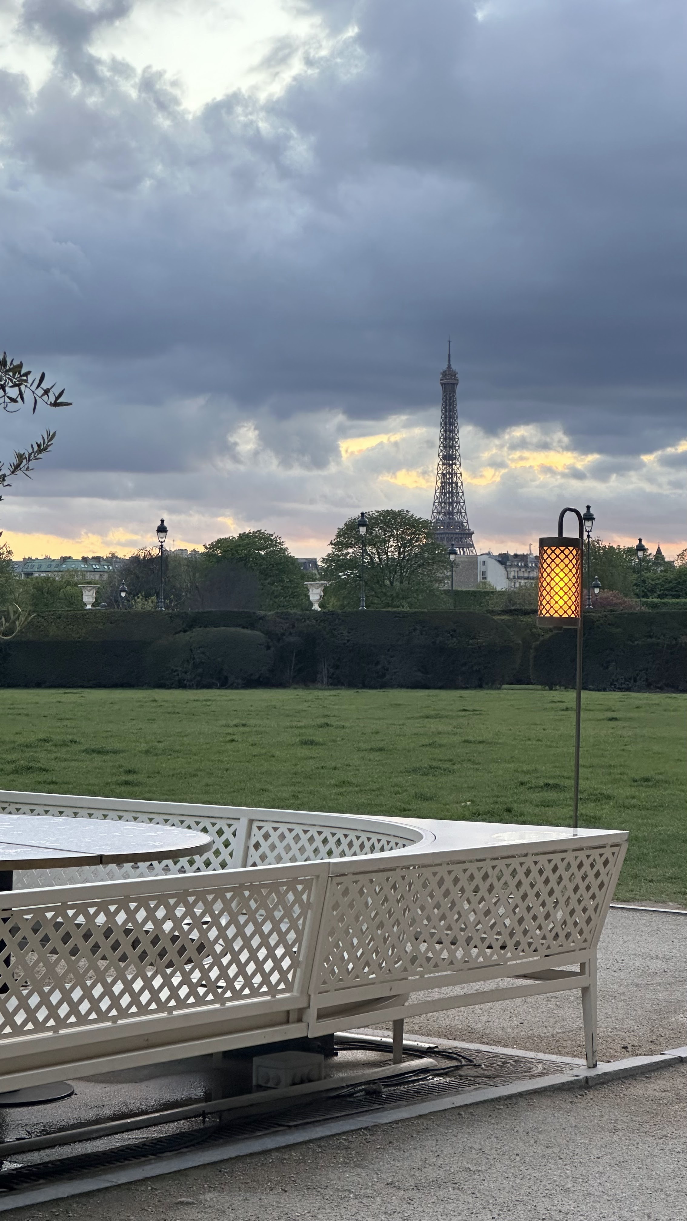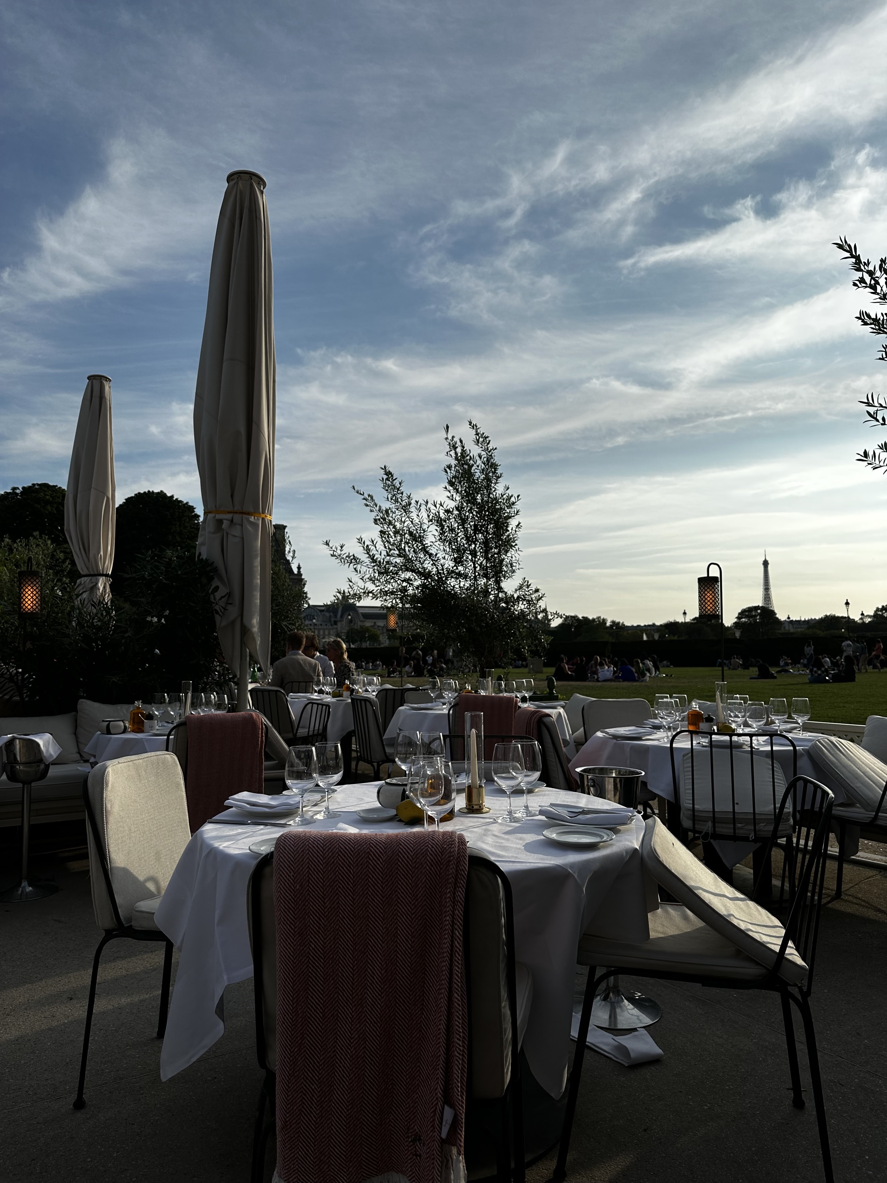 Restaurant haut de gamme qui, selon la disposition de vos sièges, offre une vue sur les jardins et la Tour Eiffel au loin. Nous avons eu un déjeuner agréable qui contrastait fortement avec les cafés très touristiques des environs. Les serveurs étaient gentils et agréables et parlaient un anglais impeccable. Notre déjeuner était composé de 2 pizzas et d'une salade. Tout était délicieux. Je n’en ferais pas un rituel quotidien mais comme nous étions en vacances, ça faisait du bien de s’offrir une expérience gourmande. Le dîner au coucher du soleil doit être incroyable ici, car nous avons apprécié les couchers de soleil sur la pelouse à proximité. Restez dans les parages jusqu'à 21 heures et assistez au spectacle de lumière sur la Tour Eiffel au loin.