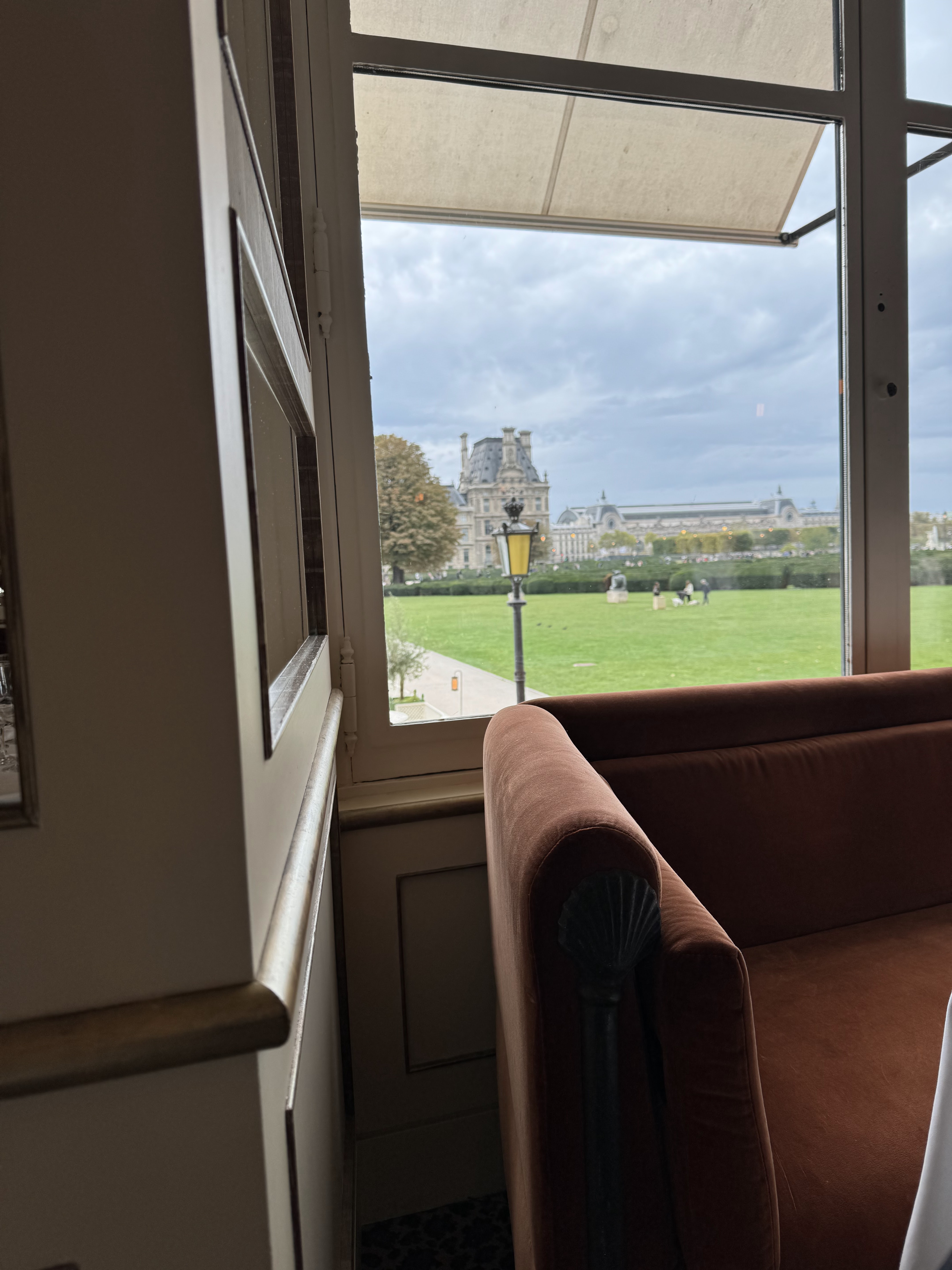 Cadre exceptionnel en terrasse et très agréable aux beaux jours. Vue superbe sur les jardins des Tuileries, le Louvre et la Tour Eiffel. Nourriture très bonne même si un peu chère ! Accueil parfait mais service un peu sec !