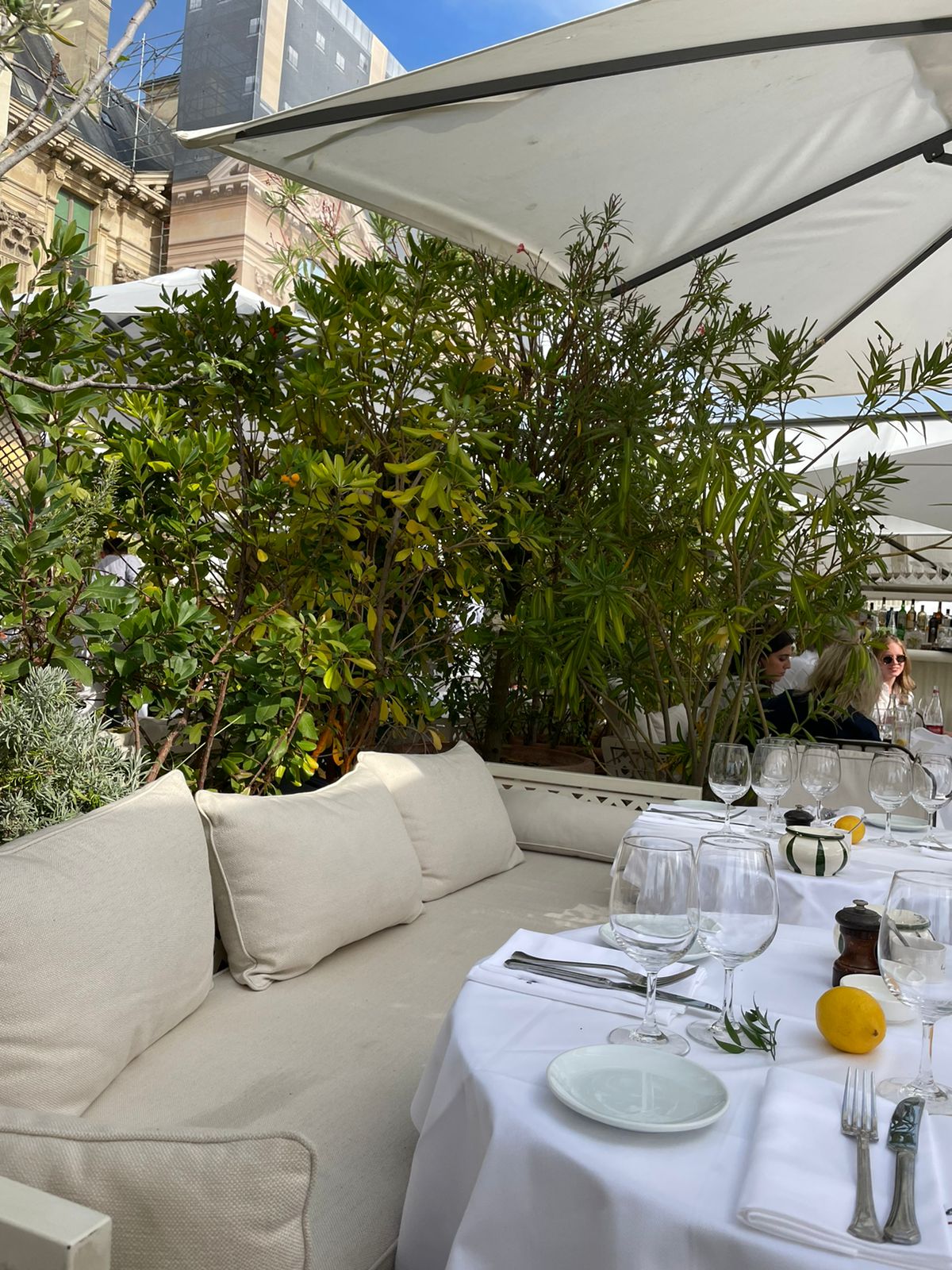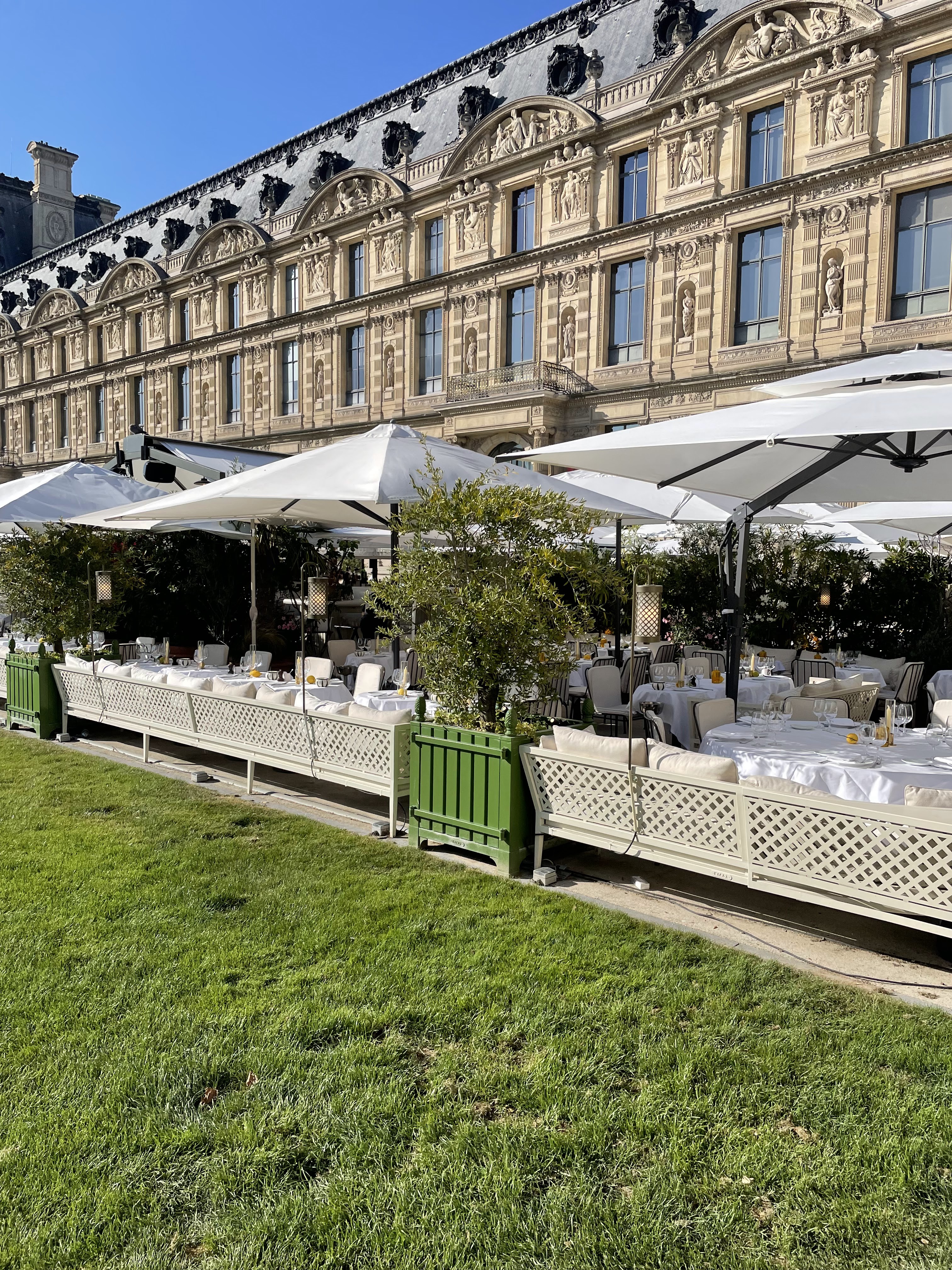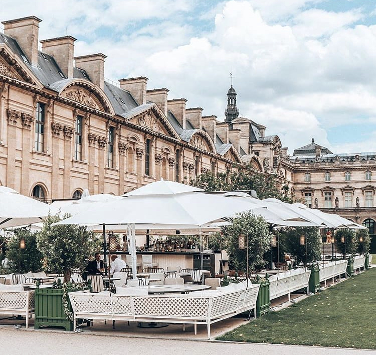 Terrasse splendide en plein cœur du jardin du Louvre, parfait pour déjeuner de très bons plats d'inspiration italienne à l'ombre des parasols avec une vue exceptionnelle. Les prix sont élevés mais la nourriture est excellente et le cadre à tomber.