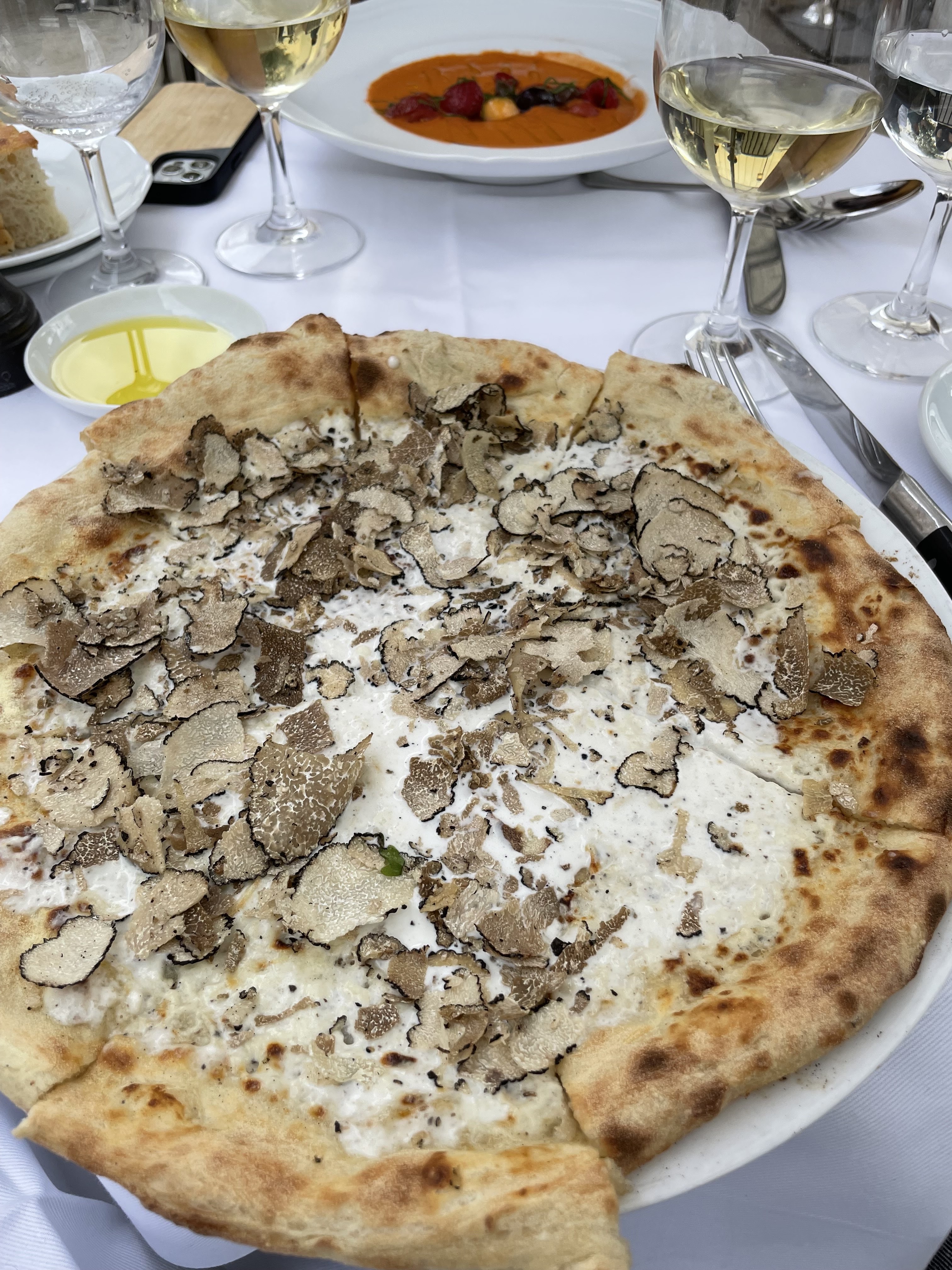 PIZZA AUX TRUFFES !!!!!! Si vous êtes un passionné de truffes comme moi, la pizza à la truffe est à tomber par terre. Vendues à 50€ ces tranches chères ne vous laisseront pas de regrets..vous remercierez votre portefeuille de vous avoir permis de vivre l'expérience 👌🏽 En plus de cela, pas un plat, une boisson ou même un condment fraîchement préparé n'a été déçu. Le service était charmant, le service des boissons était rapide et tout le monde semblait très sympathique, rendant l'expérience exclusive et relaxante.