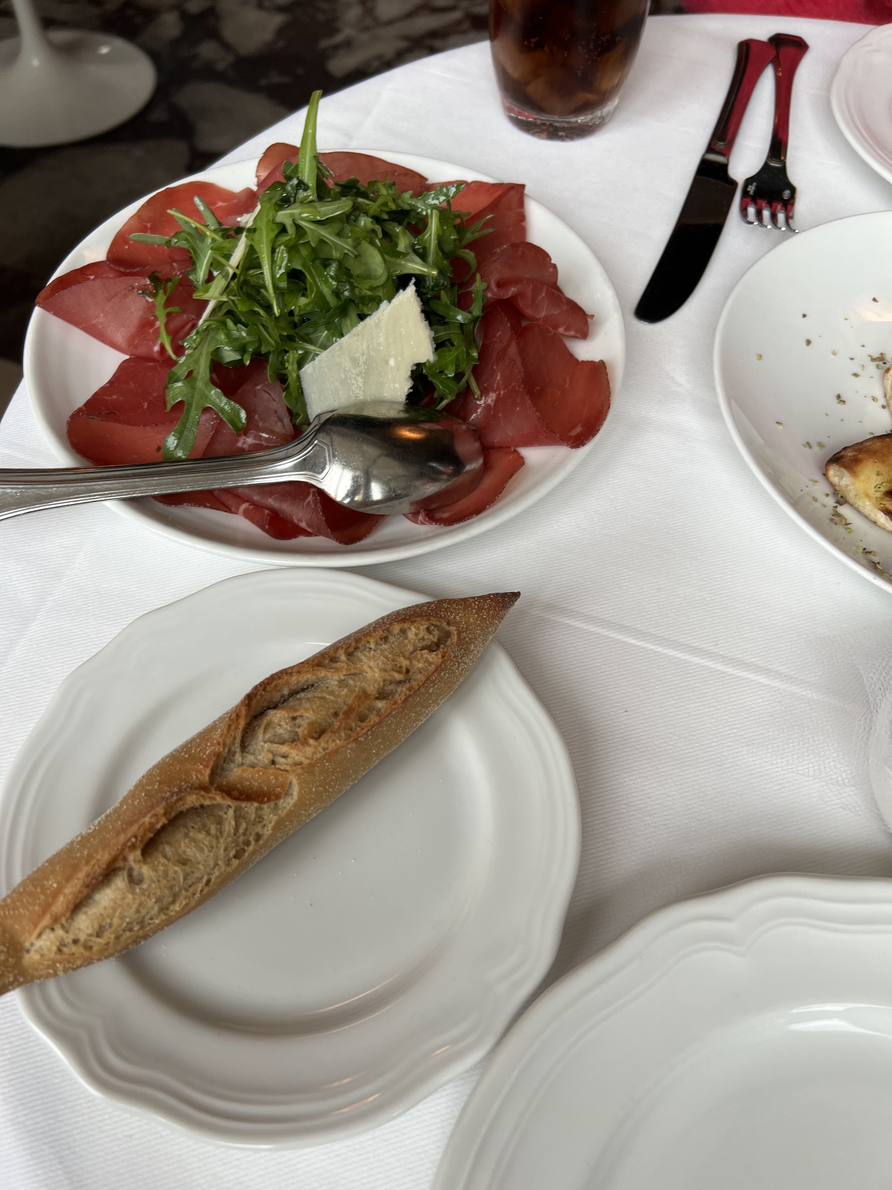 Les vues étaient bonnes. De bonnes personnes regardent le spot. La pizza aux truffes était super. Très plein de saveur. Il est probable qu’ils aient non seulement ajouté des copeaux de truffe, mais qu’ils les aient également cuits dans de l’huile de truffe. Nous avons également commandé le carpaccio de poisson. Je ne m’en souciais pas beaucoup. C’était frais, c’est tout. Un peu cher dans l'ensemble.
