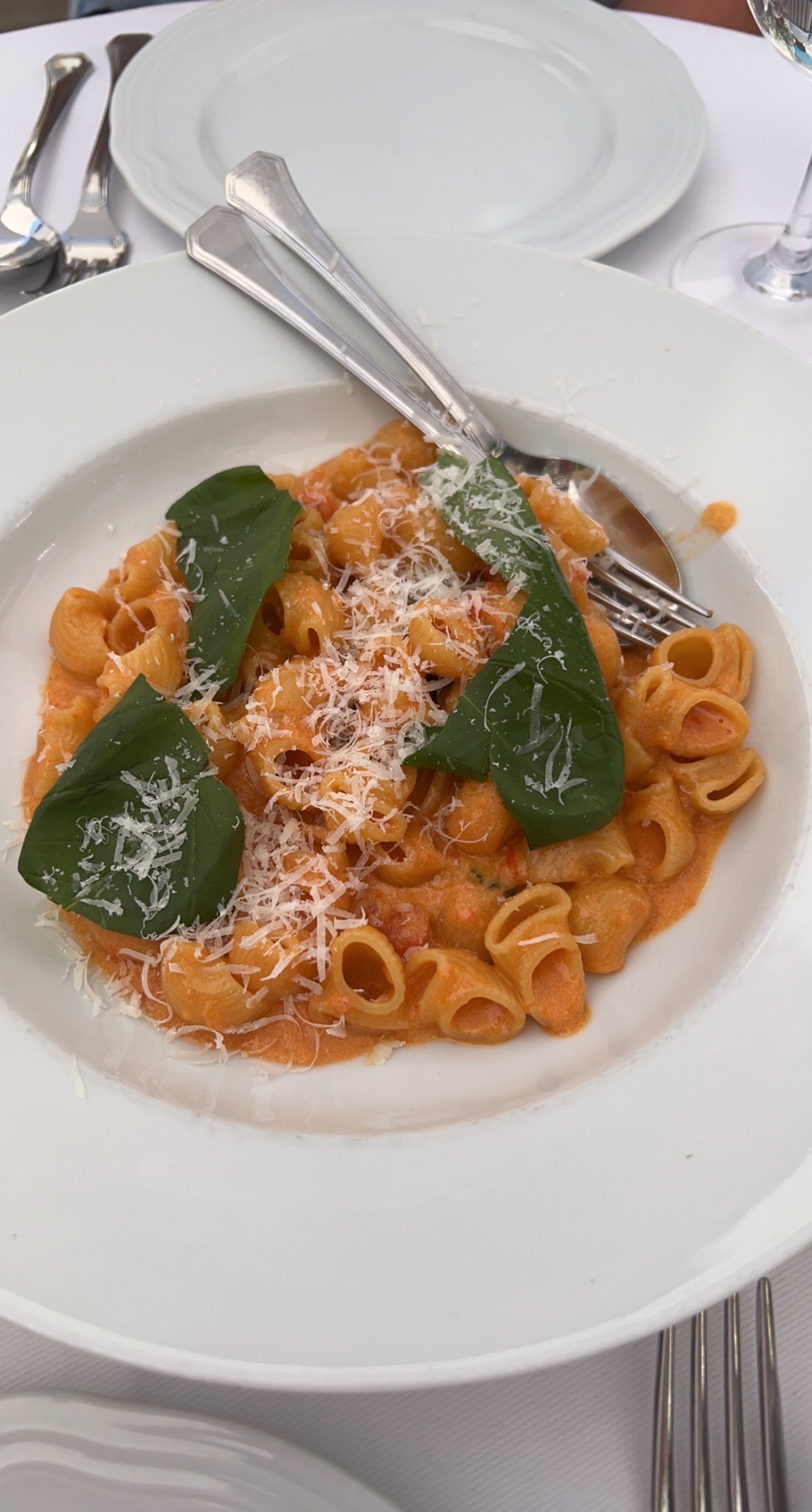 Restaurant très sympa, intimiste, belle vue. La nourriture était bonne mais je m'attendais à un peu plus. J'ai eu les pâtes à la vodka 🍝