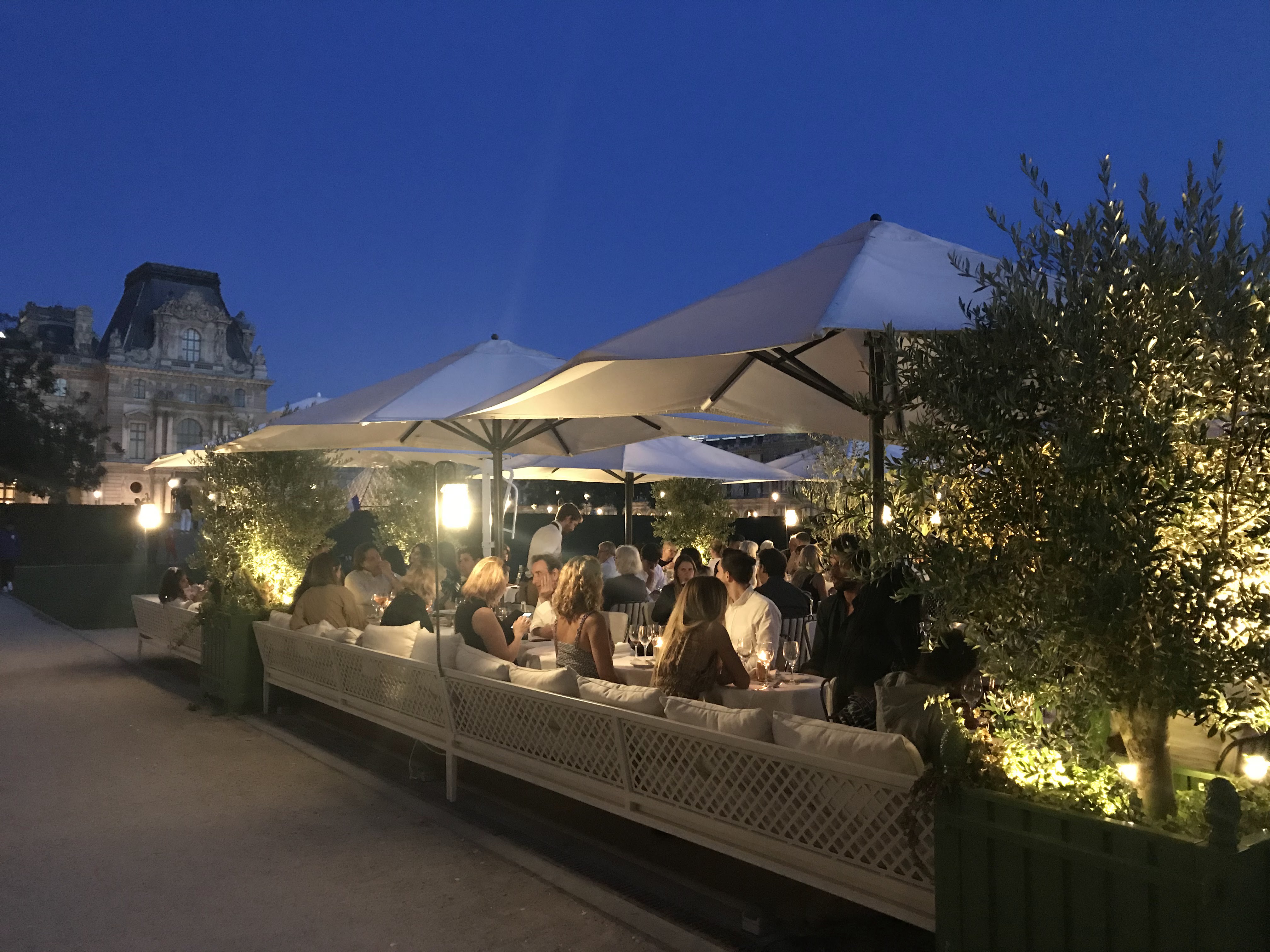 Un endroit très agréable pour prendre un verre ou dîner par une chaude nuit d'été. Les tables sont dressées dans les jardins du Louvre et l'ambiance est calme et agréable. La carte est plutôt italienne, avec d'excellents choix au rayon poisson. Les vins sont excellents (je n'ai testé que des blancs et des rosés pour l'instant) Le personnel est gentil et axé sur le service. Cependant, lorsqu’il y a beaucoup de monde, il peut être difficile d’attirer leur attention. C'est le petit truc qui m'empêche de leur attribuer une note de 5 étoiles. C'est un excellent choix et je le recommande vivement.