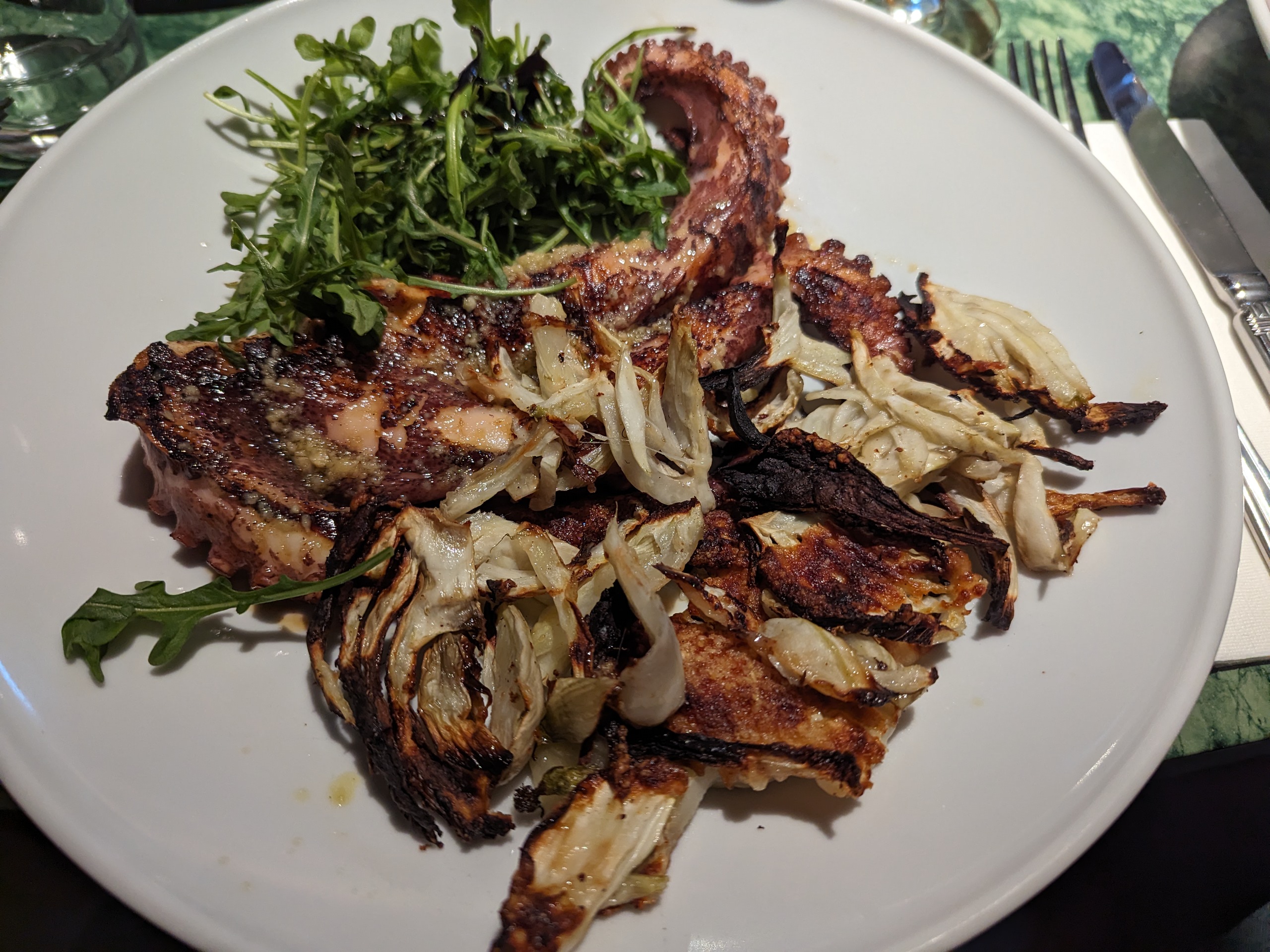 C'est juste parfait. De l'accueil,en passant par le service et la décoration pour commencer.La cuisine est divine, le poulpe est exceptionnel,je n'ai jamais mangé de poulpe aussi tendre,aussi goûteux. Les tagliatonis auf truffes pareil. La serveuse malgré qu'elle soit en formation est super,elle décrit des plats d'une façon a nous mettre l'eau à la bouche, et elle est de très bon conseil. On nous a fait goûter plusieurs vins pour nous decider, c'est juste incroyable🤗. Ce restaurant est un sans faute. Et pour finir les toilettes sont trop drôles. Je vous laisse découvrir par vous même 😉 et nous reviendrons sûrement.