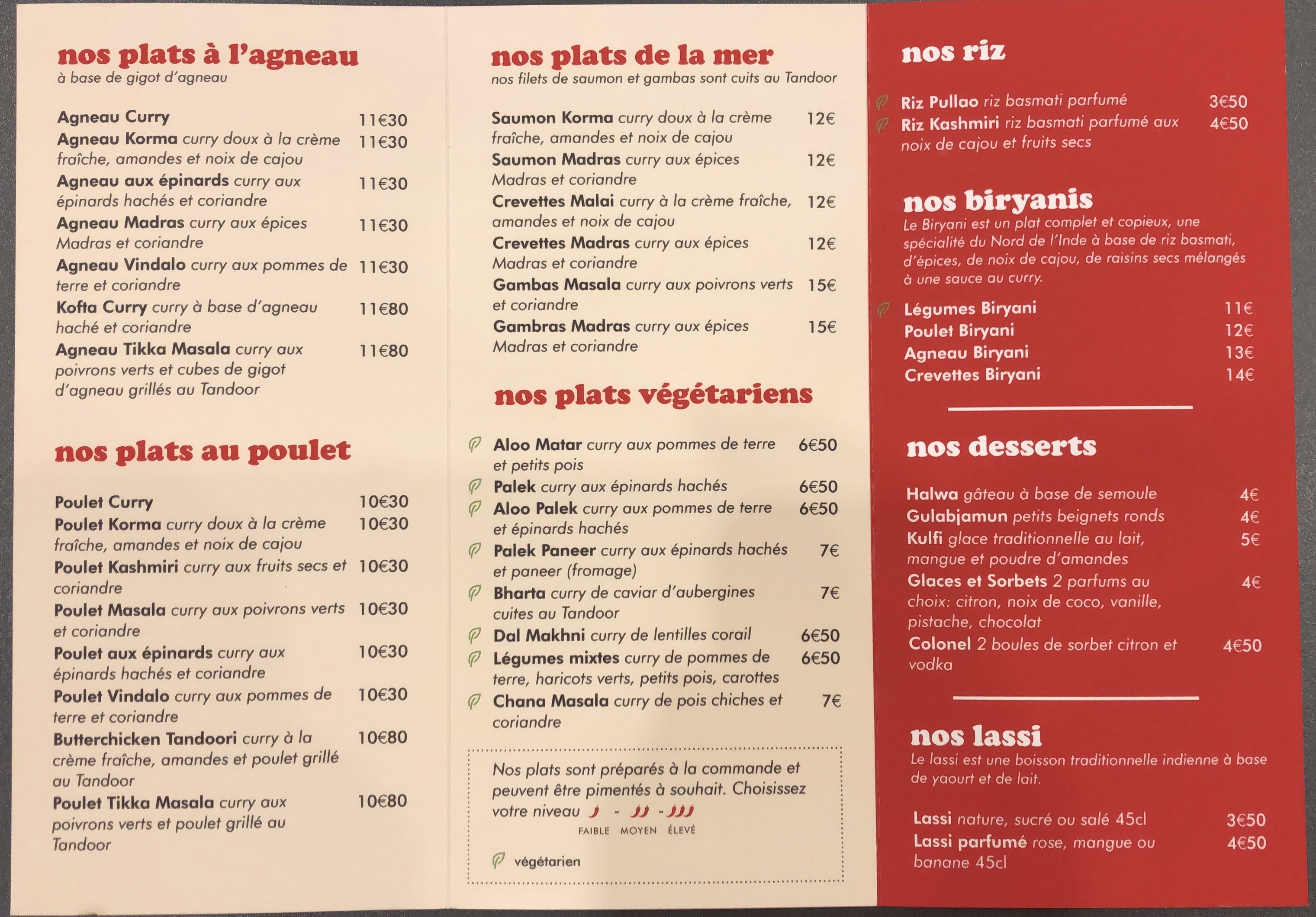 D apparence simple et vieillot. Loin des restau indiens sans vrai identité et qui ressemblent a des chinois..vous serez ravi de l acceuil et de la convivialité de ce modeste lieu Cote cuisine vos papilles gustatives vont être ravies Cote prix du tres raisonnable.. Attention toutefois à ne pas avoir les yeux plus gros que le ventre en commandant ..les portions des entrées sont imposantes Un bon 16/20