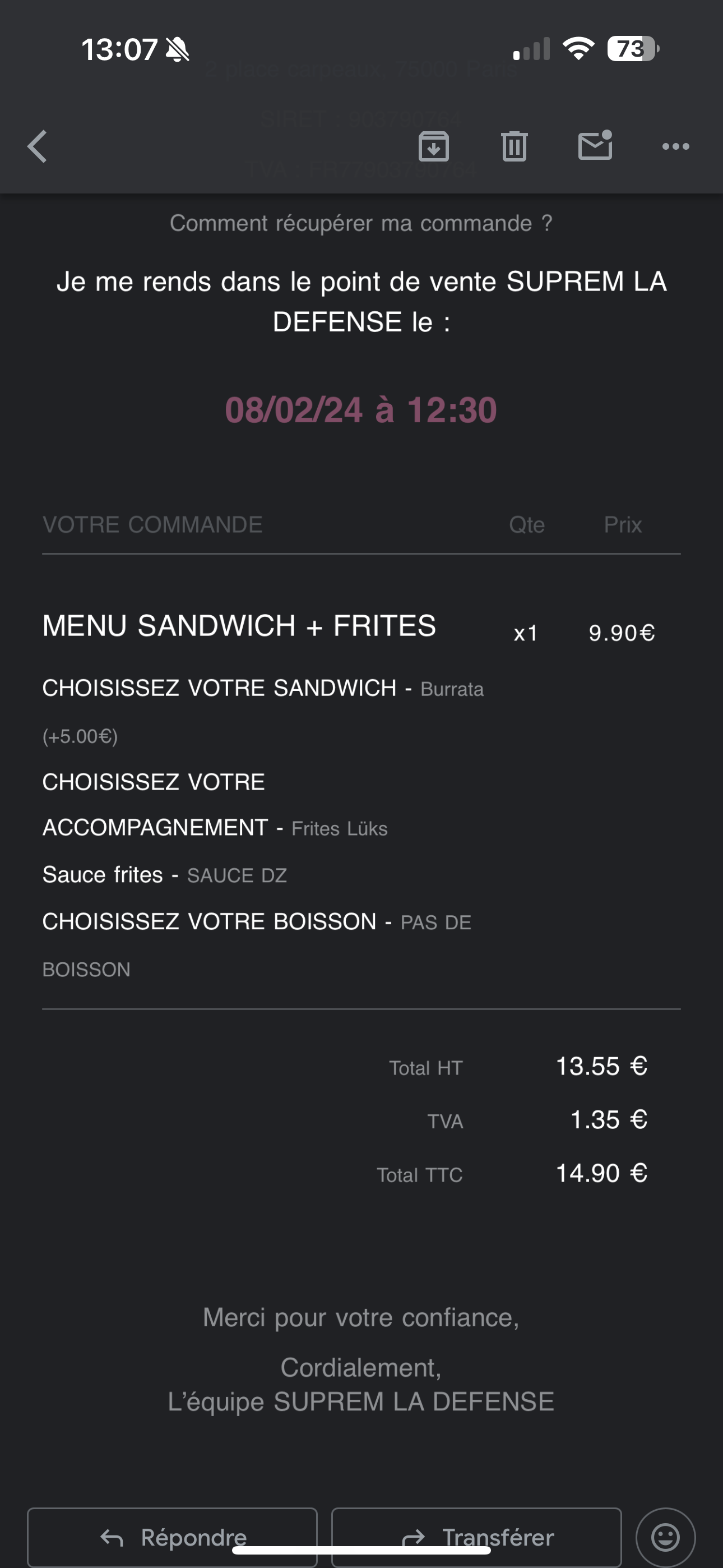 J’ai attendu 40min ma commande. Finalement je n’ai pas eu le temps de manger.