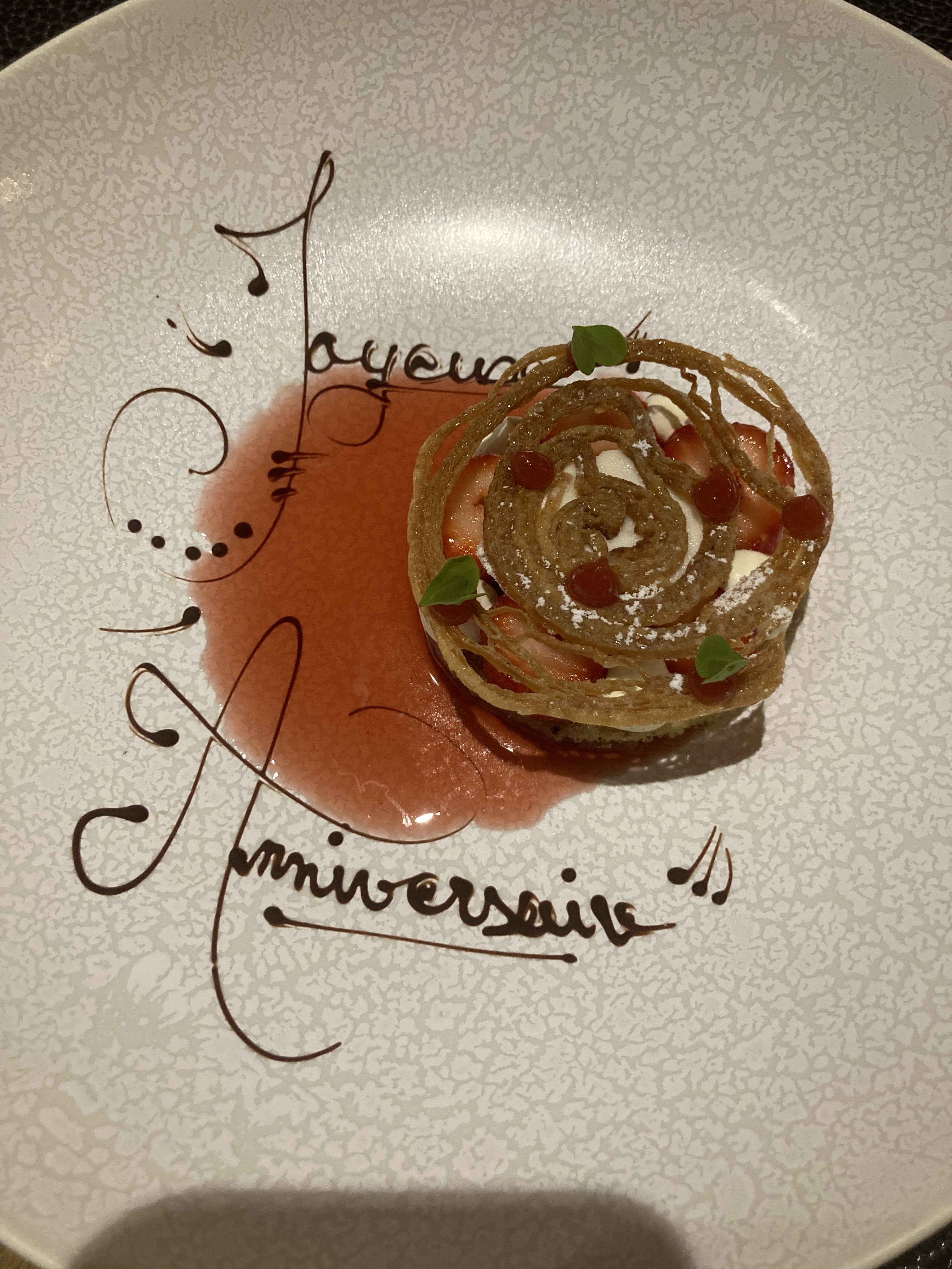 Que dire ?? Merveilleux surprenant du début à la fin. Les plats déclenchent des émotions folles. Super service déco top …. Magnifique expérience avec en plus une belle attention pour nos 25 ans de mariage . Un grand merci à toute l’équipe ..!!