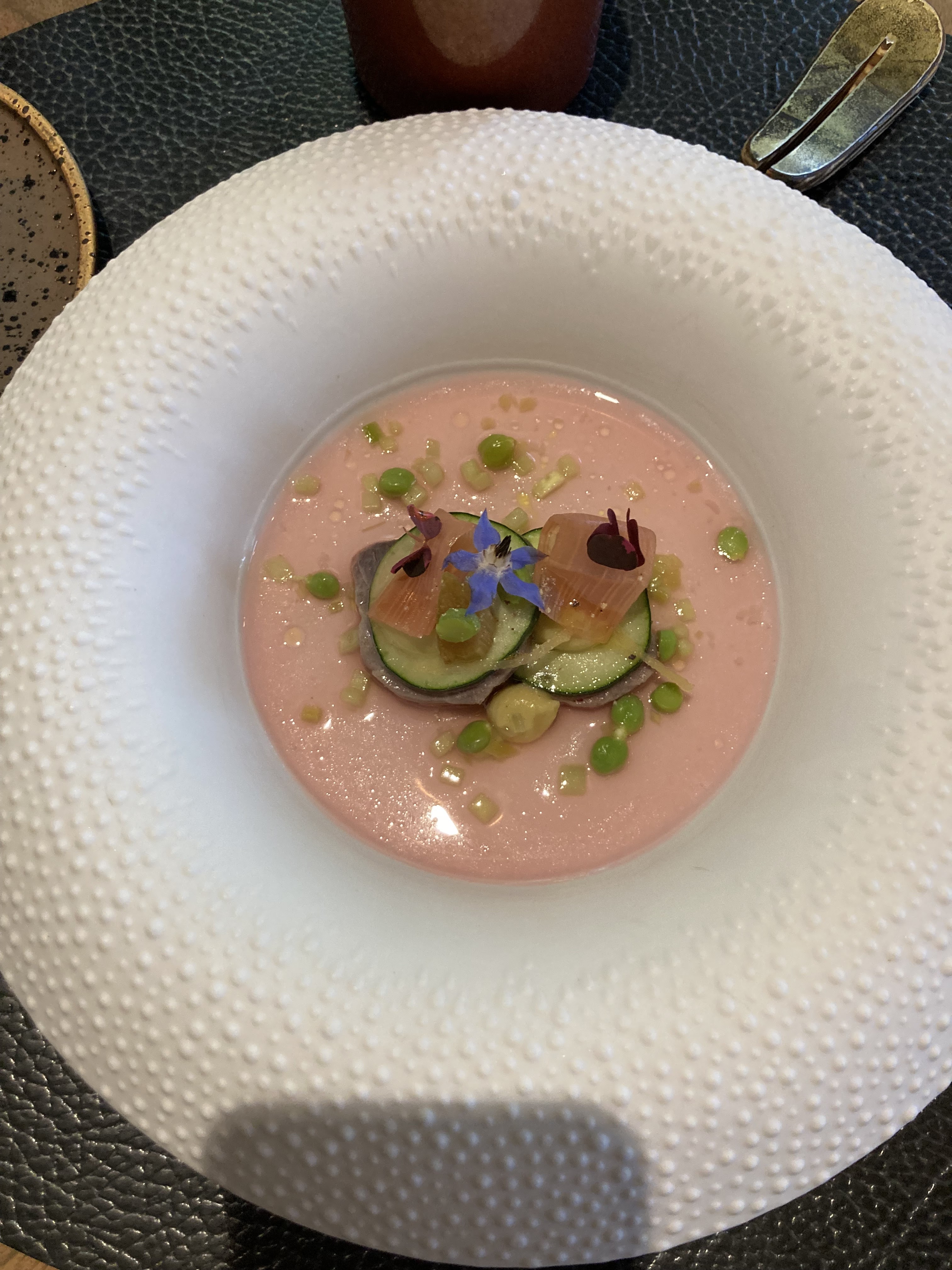 La déco moderne est belle. L’accueil, tout comme le service, très loin d’être strict, est aux petits oignons. Au déjeuner, j’ai opté pour la formule « Yeux fermés ». De bout en bout, ce sera superbe. Les produits de la mer sont magnifiés. La beauté dans les assiettes reflète les délices du palais. L’étoile du Guide est méritée. Découverte de vins naturels ou en biodynamie harmonieusement choisis avec une sélection en accord avec les mets. Pause détente d’absolu pur plaisir.