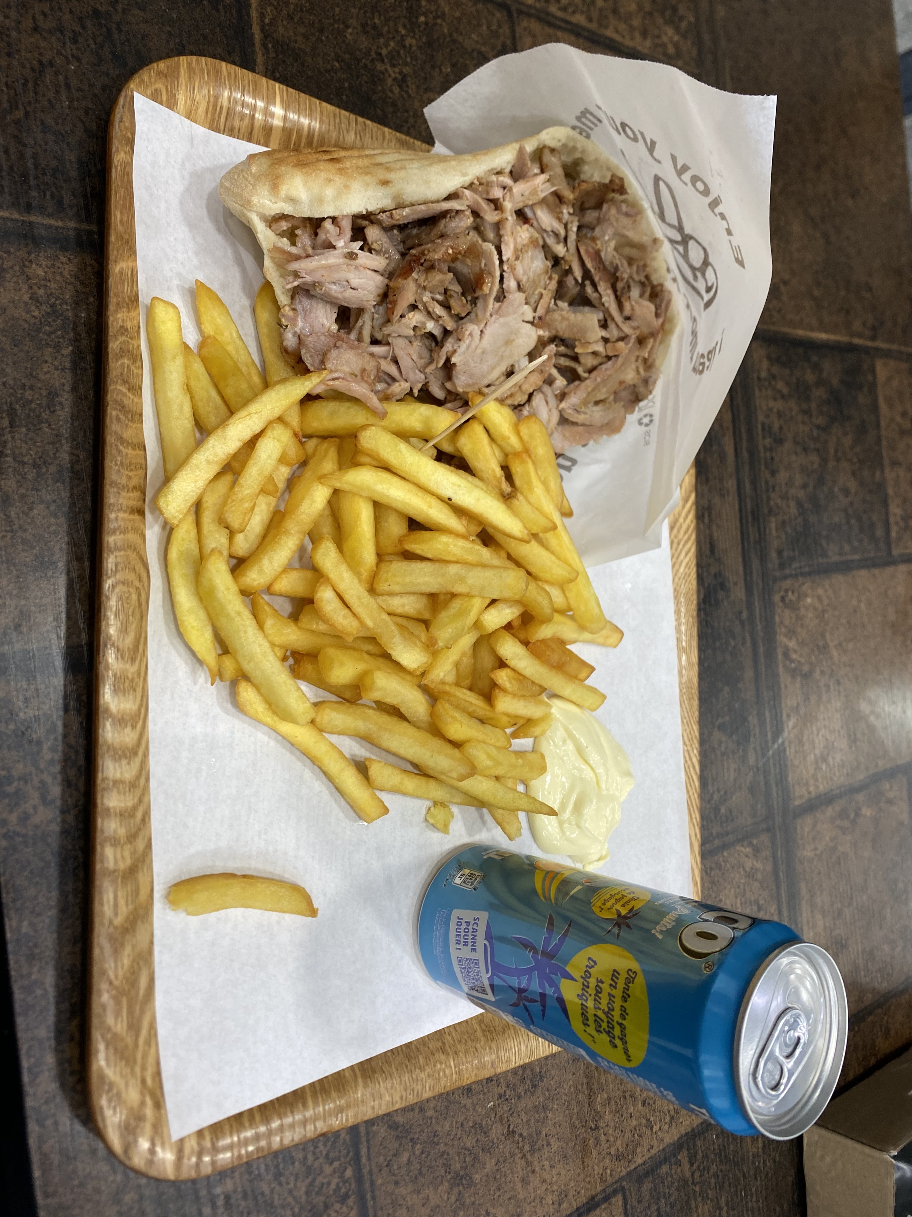 Le Sandwich escalope est bon même si l’escalope à l’intérieur est pas assez cuite, le pain du sandwich à l’aire d’être fait maison, les frites sont industrielles insipides et pas bien cuites, les chefs du kebab ont une mauvaise compréhension il faut bien les répéter plusieurs fois.