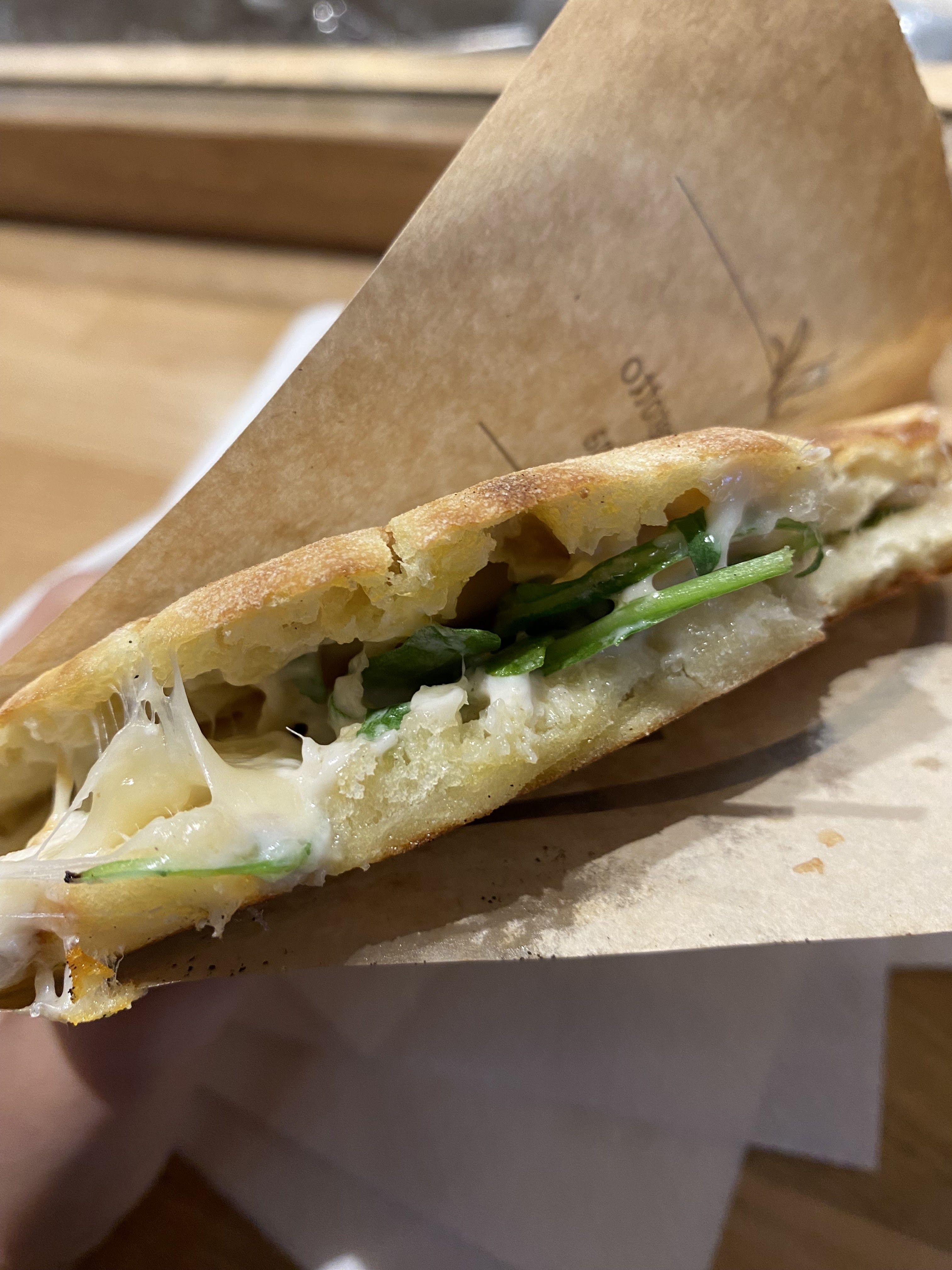 La qualité n’est malheureusement pas au rendez-vous pour le prix, 7,70 euros le sandwich végétarien « Bufalino ». Le sandwich est trop peu garni et n’a pas beaucoup de saveur à part le côté beaucoup trop salé du pesto.. présent en trop grande quantité comparé à la mozzarelle et aux légumes (tomates/salade).. Seul le pain est chauffé, du coup la mozzarella à l’intérieur est froide, ce qui enlève beaucoup de gourmandise.. Le sandwich est vraiment beaucoup beaucoup trop salé.. pourtant il n’y avait rien de salé à part le pesto.. normalement j’adore le pesto mais là il y avait un énorme déséquilibre, le pesto était vraiment saturé en sel.. 😣 Et pour le prix, le sandwich est trop peu garni en légumes/mozzarelle. L’accueil fut, par contre, agréable et souriant.