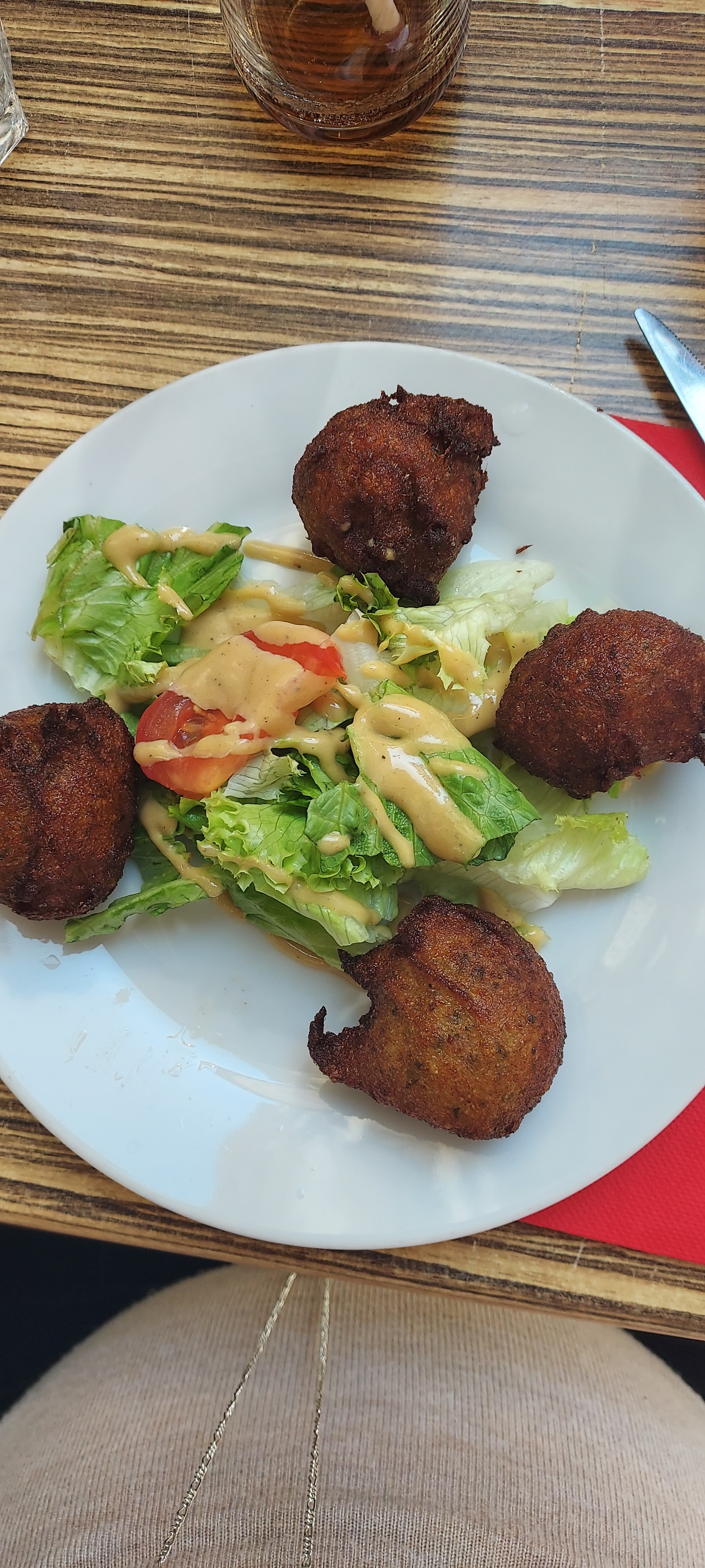 La déco est très sympa. Les accras et les pastels de poissons étaient excellents. Les plats sont copieux.