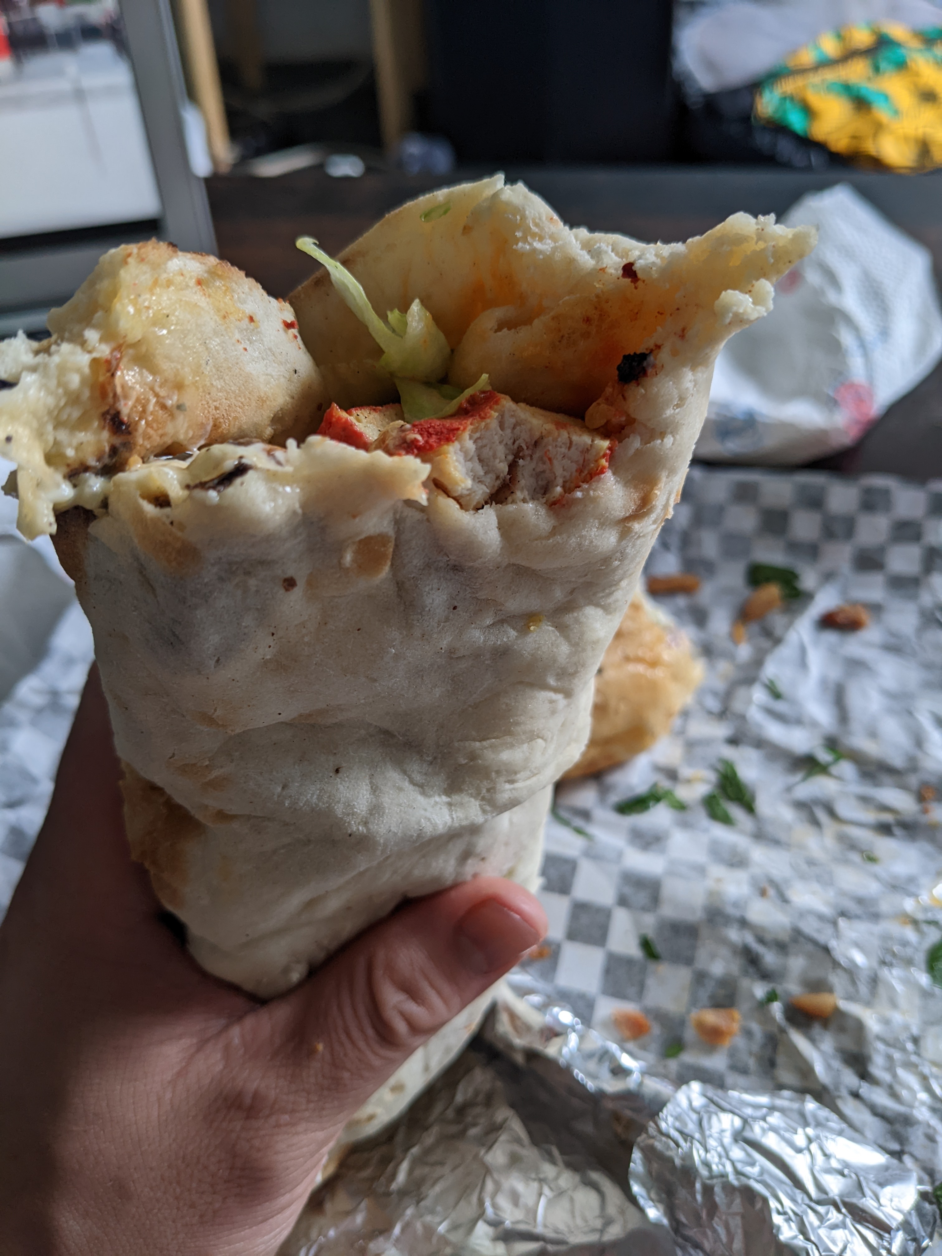 J'ai eu un pita au poulet tandoori à emporter. Tellement délicieux. Et le personnel était également très gentil.