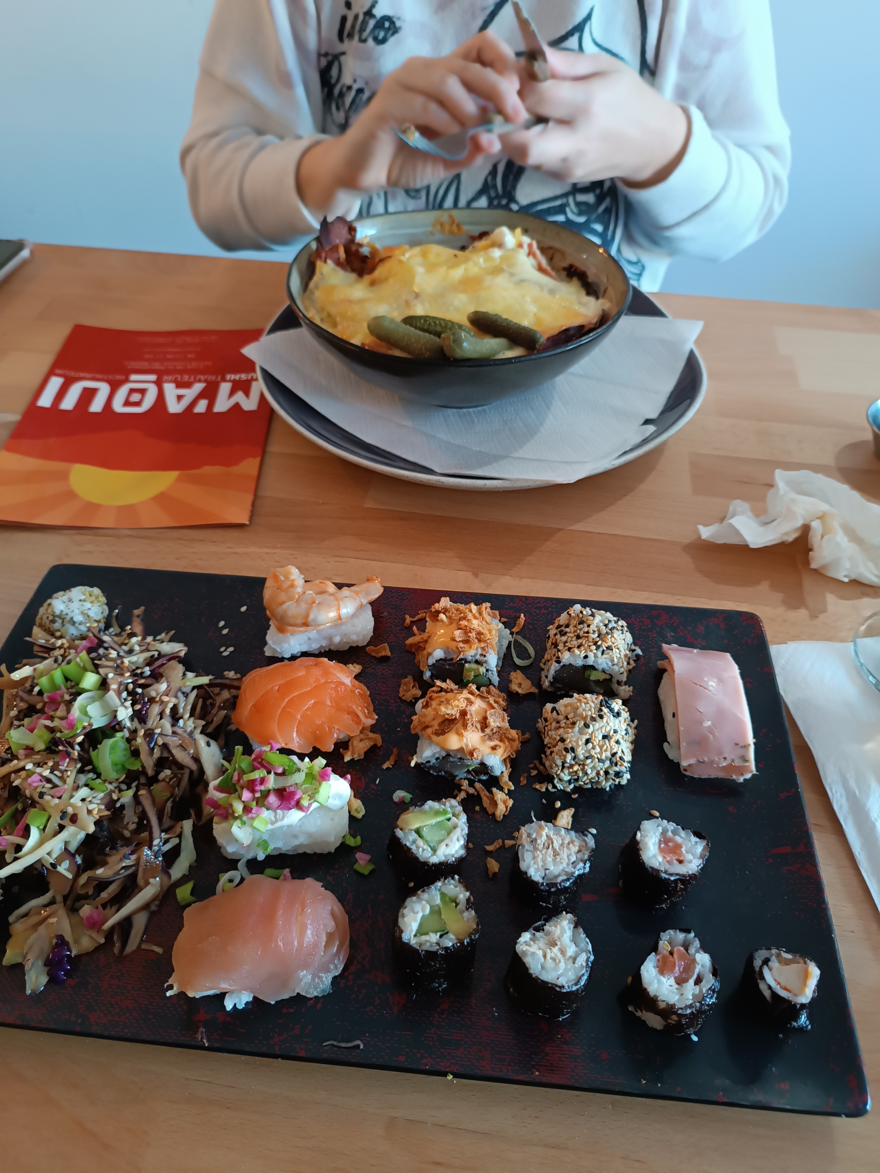 Les samoussas étaient froides presque encore gelées au milieu et on pouvait seulement nous proposer des Maki et Nigiri parce qu'il n'y avait apparemment plus de riz pour préparer d'autres sushi. C'était un dimanche midi et nous étions les seuls dans le restaurant.
