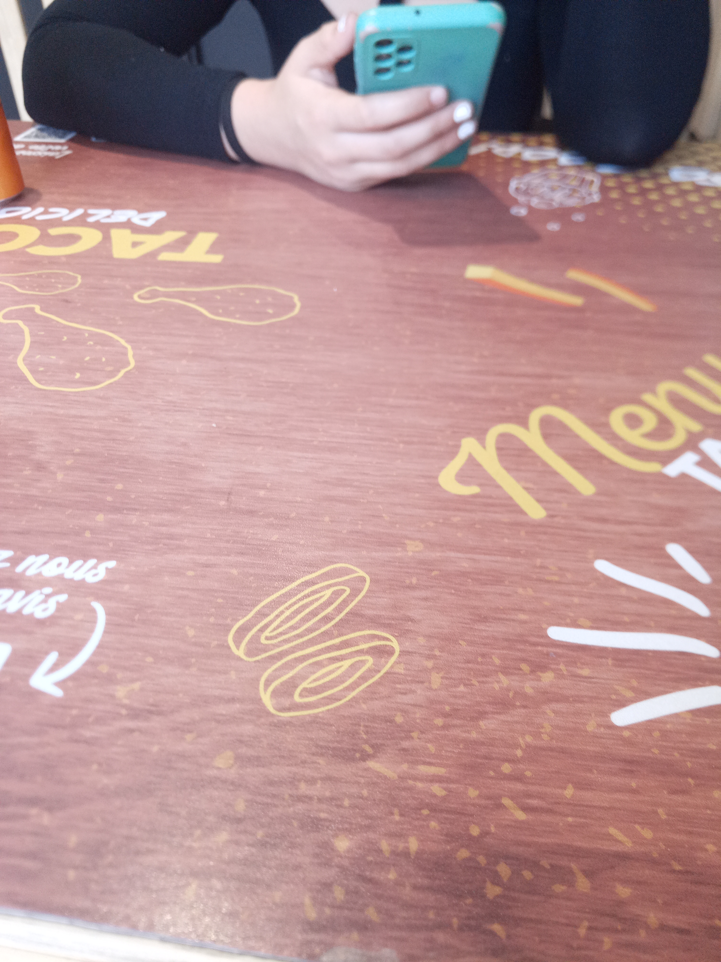 Super bon!!! la prise de commande au top ,l équipe est très accueillante et le p'tit plus une salle où mon fils aime à se retrouver entre copain autour d' un tacos ...je recommande...,