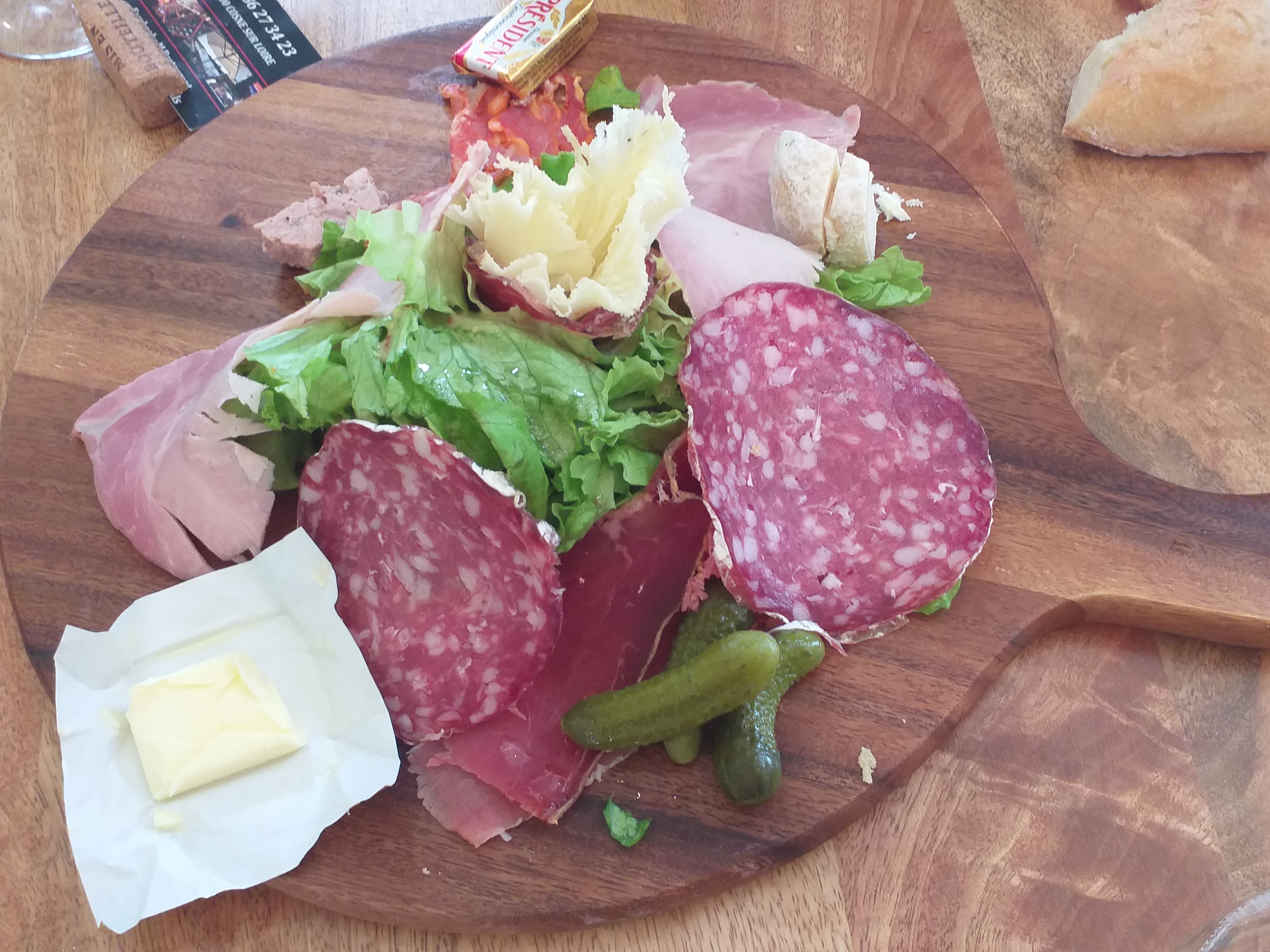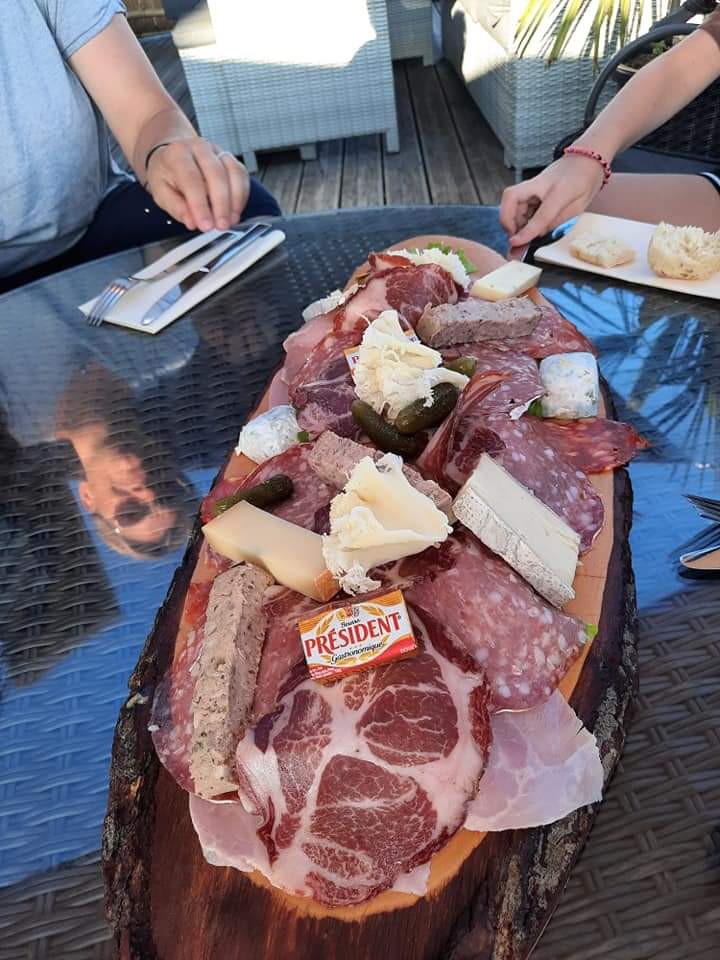 Nous avions opté pour une grande planche de charcuterie pour 4 plus plats à suivre. Nous avons suivi le conseil de la serveuse avec la petite planche.Bon conseil, c etait bien garni. Friture et carré d agneau en plat tous très bon. Cadre très joli et prix raisonnable.