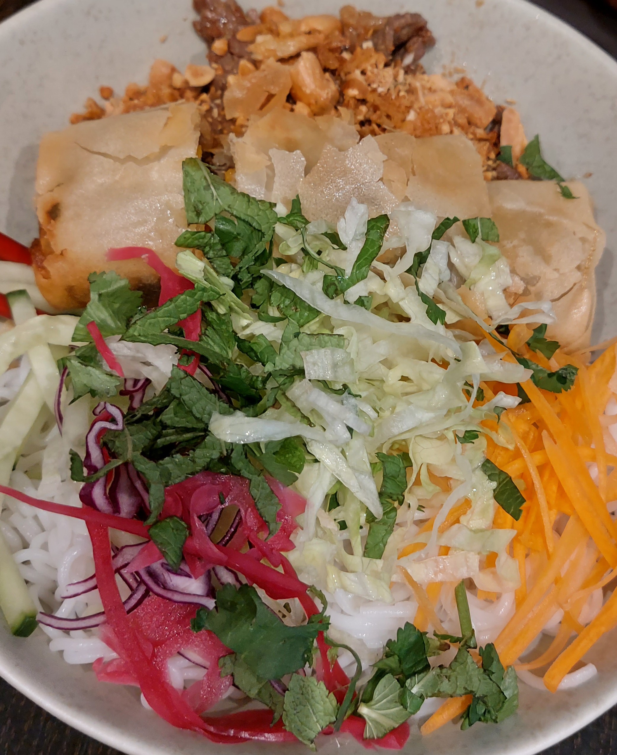 Visuellement la présentation n’est pas terrible, le nem n’était pas coupé, pas de feuilles de menthe, quantité de nouilles toute petite et pour un prix l’un des plus chers de tout le quartier et des alentours. Sinon le bo bun n’est pas mauvais mais ce n’est pas le meilleur que j’ai pu manger et il était vraiment petit…