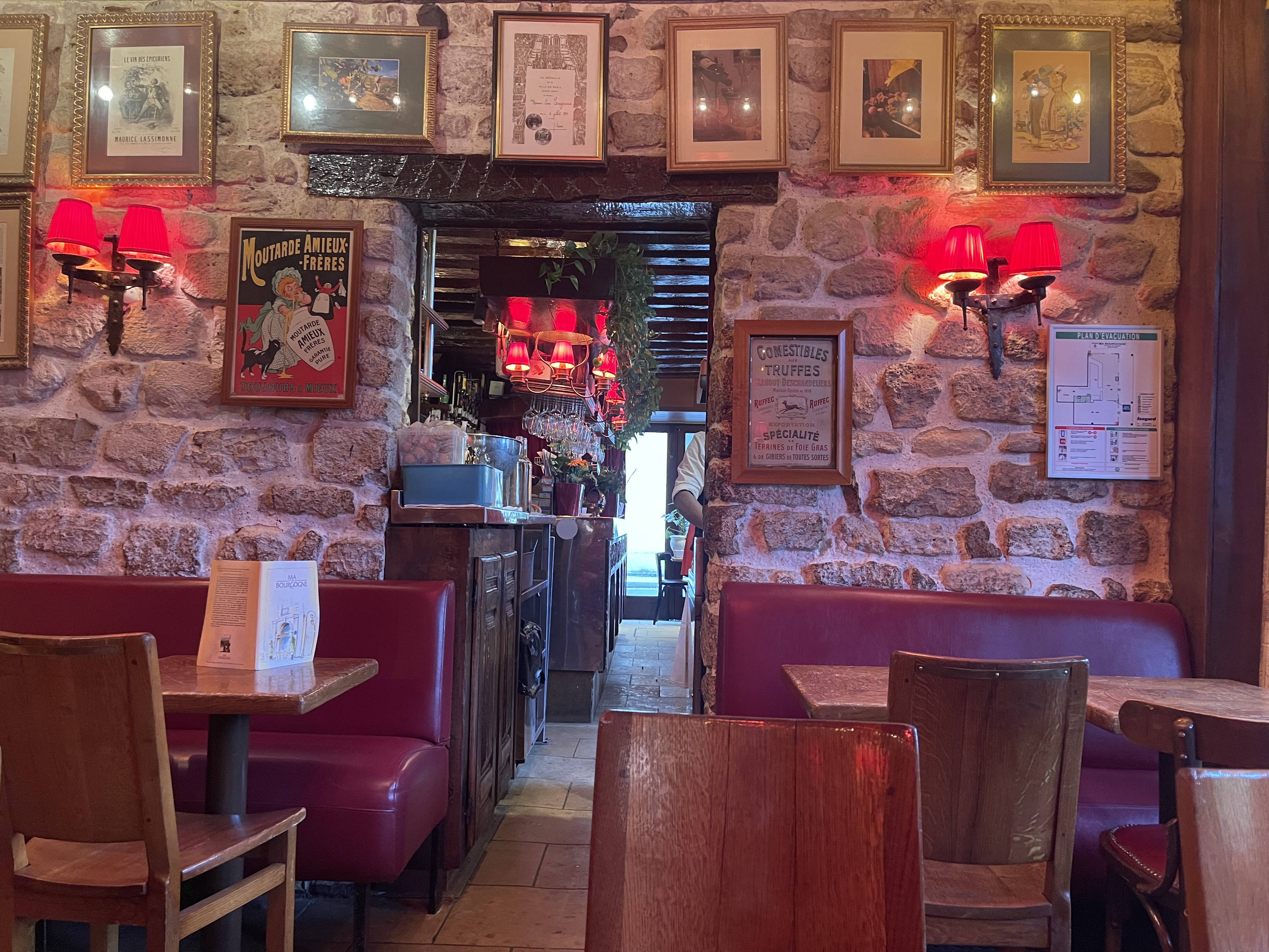 Restaurant datant de début 1800 typiquement parisien et avec le décorum Place des Vosges Restauration correcte