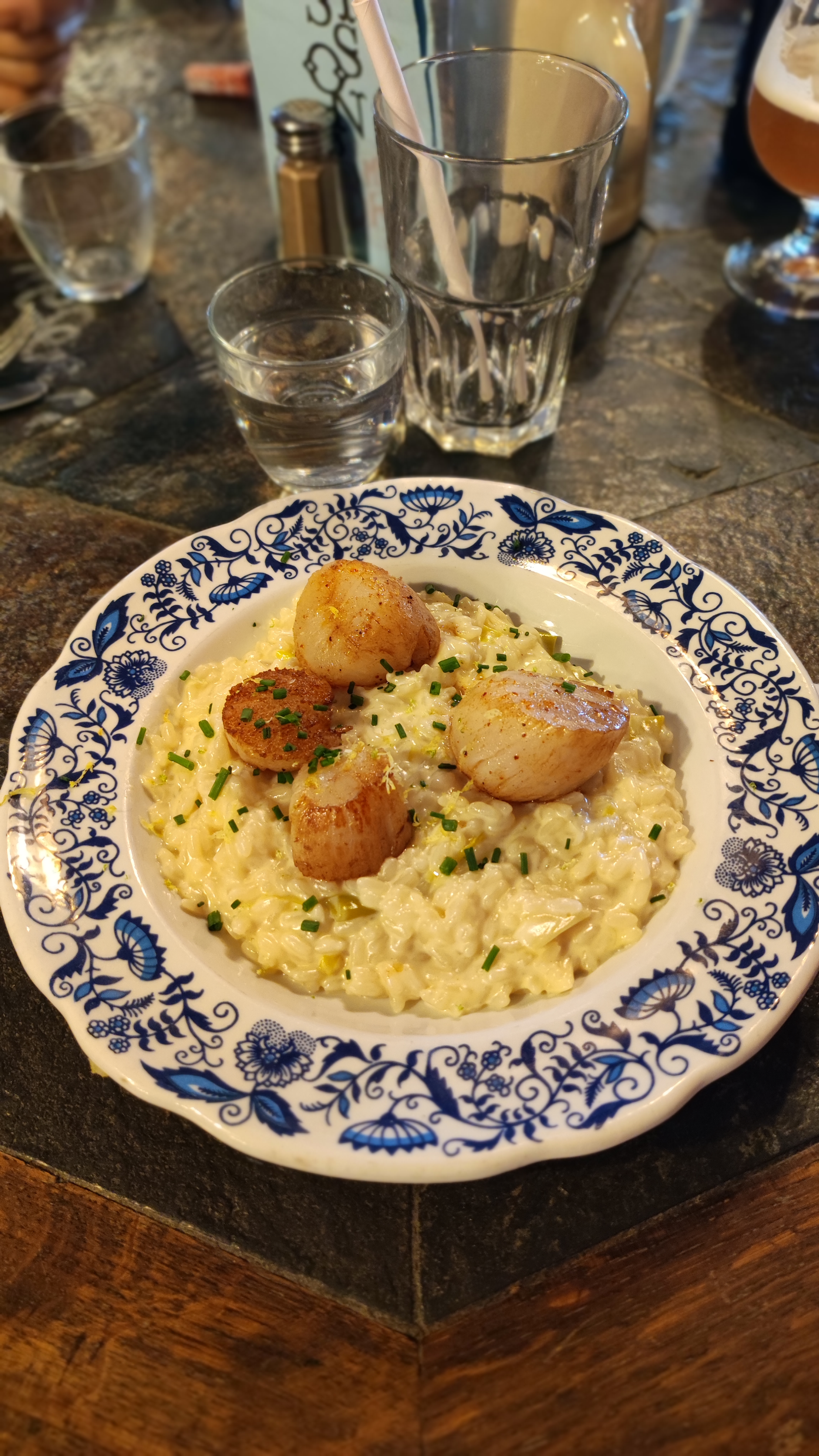 Au départ acceuil très sympa. Arrivés de bonne heure, nous avons dût attendre 2 h avant d'être servis. Pour un pâté et un peu de salade, et 2 risotto aux St Jacques. Un peu long pour une carte très raccourcie. Dommage car on est en janvier et période creuse.