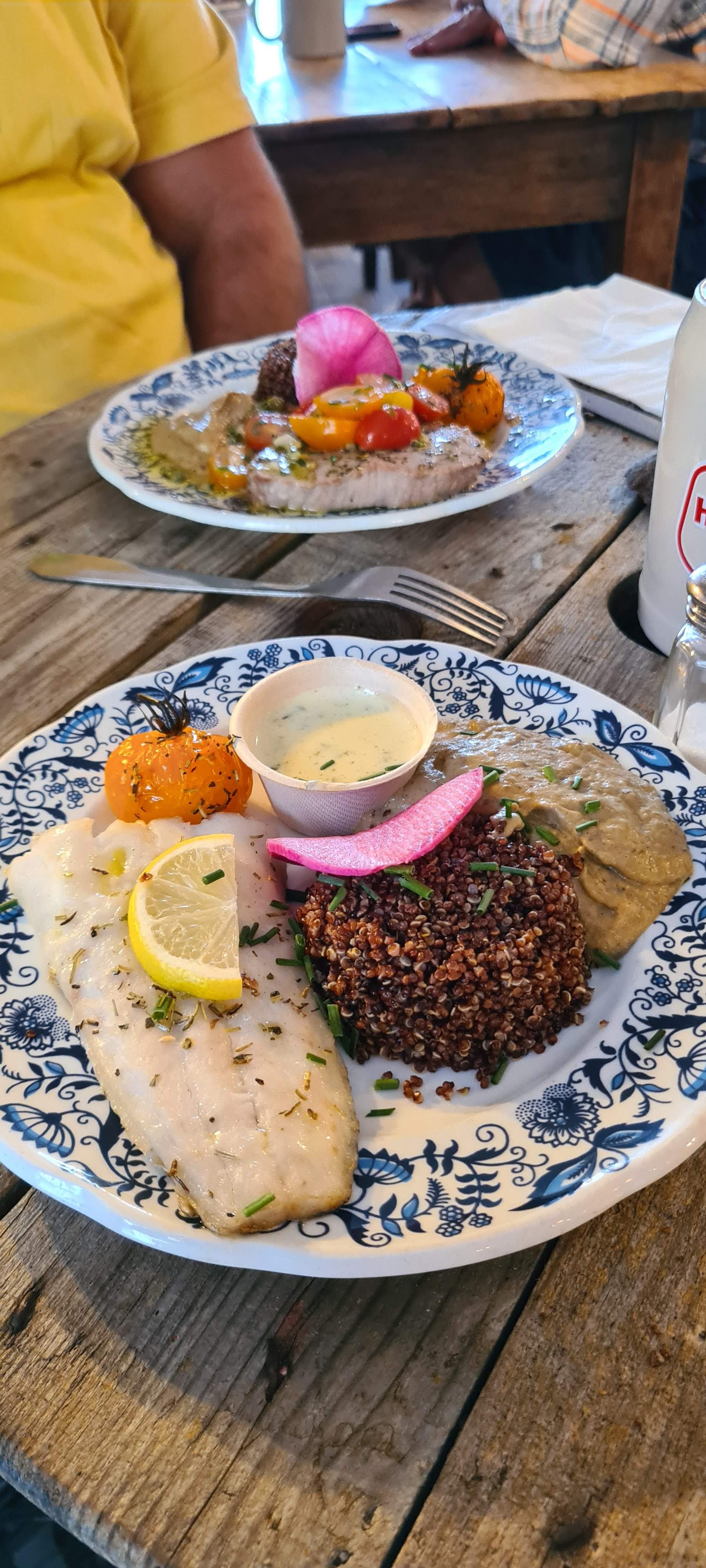 Repéré du port, sa grande vitrine et sa terrasse me donnent toute suite bonne impression. L'accueil est chaleureux, l'ambiance conviviale. Mon assiette, du thon mi-cuit sauce vierge, est harmonieuse en couleur et en goût, à l'image du restaurant. Un lieu où on se sent bien 😊