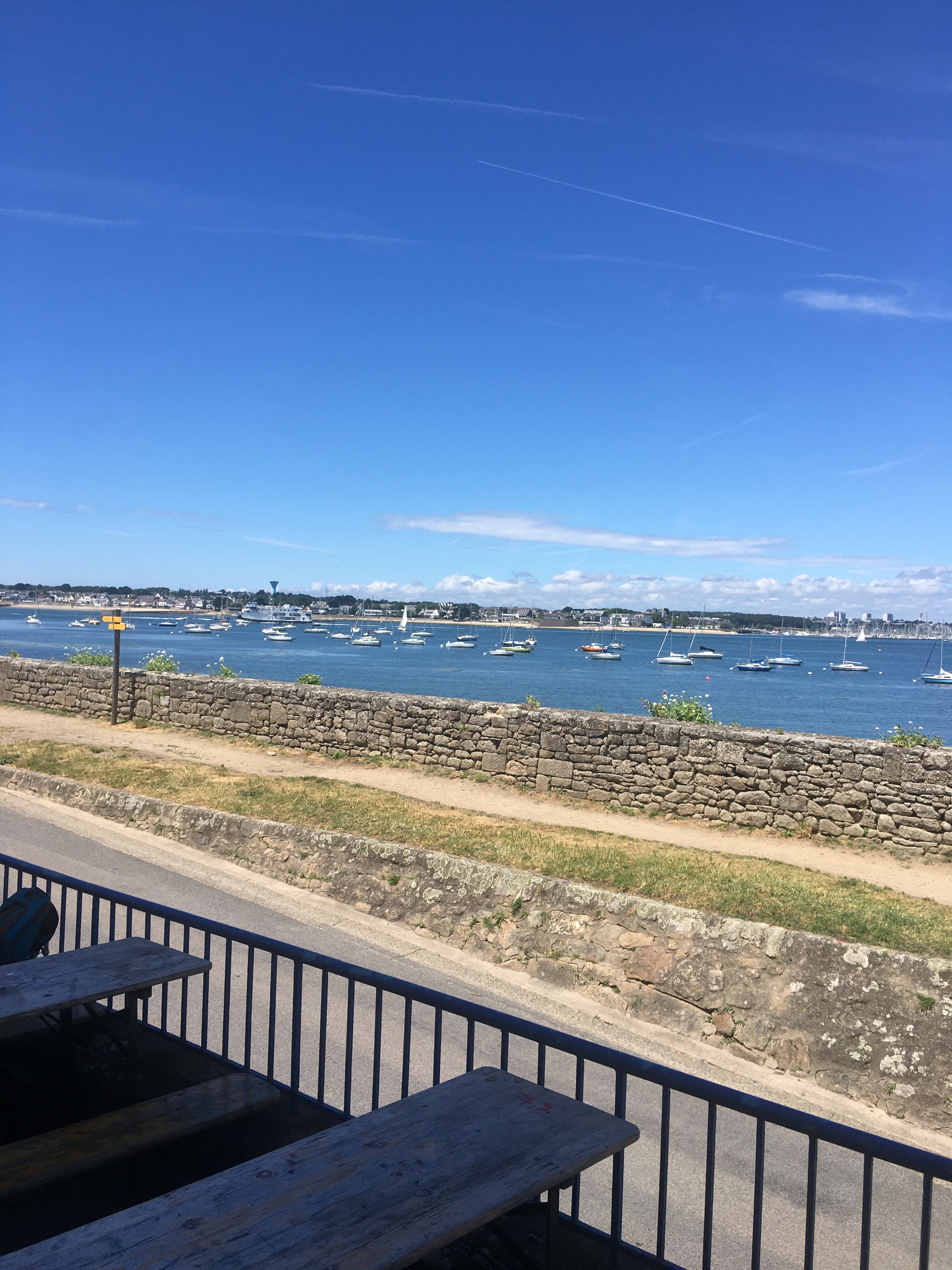 Un lieu chaleureux avant tout, c’est plutôt rare, avec une déco marine. Des tables espacées, une lumière non agressive, parfait. Une carte limitée (tant mieux) de plats brasserie rajeunie. Sympa. Et la vue sur notre belle rade… avec parfois un Ultim ou un Imoca qui nous fait rêver au grand large…