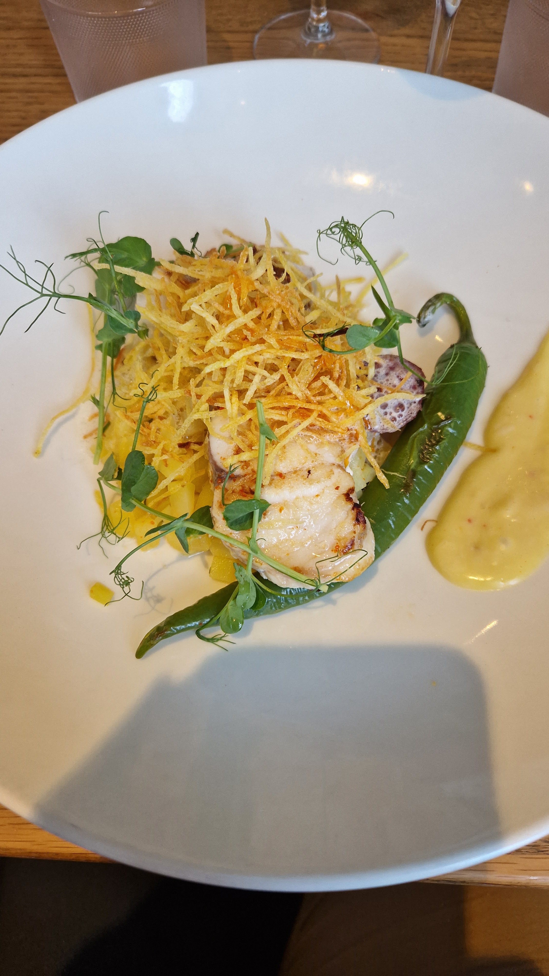 La lotte et son sublime accompagnement ! Un pur régal !!! Dans un cadre agréable et un personnel attentionné.