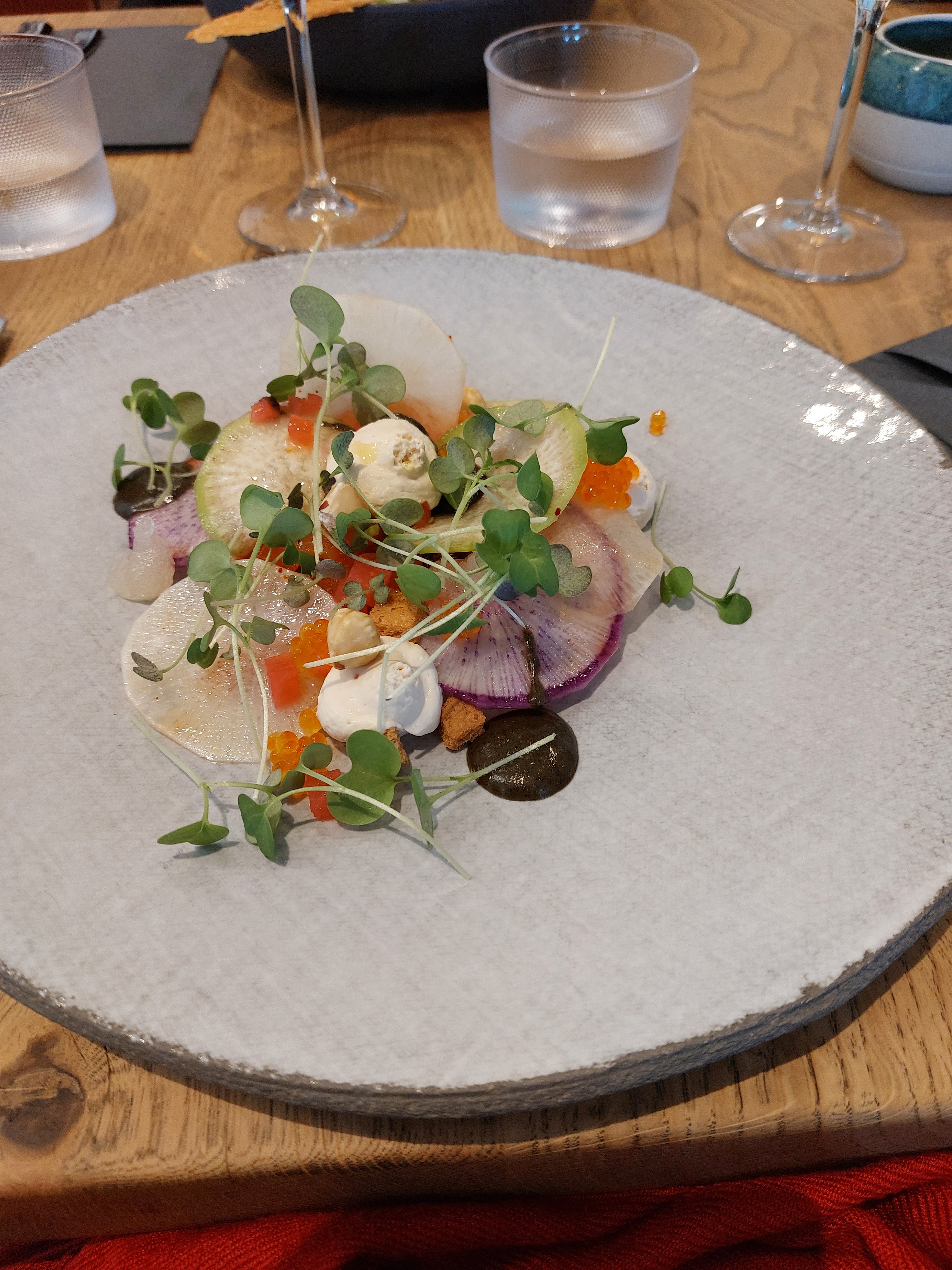 À découvrir, sans hésitation mais avec réservation ! Tout y est, le service simple, naturel, efficace, l’ambiance chaleureuse, la belle vaisselle, les fauteuils hyper confortables, et la cuisine au top, des produits frais, de qualité, de saison, locaux, avec un équilibre des saveurs et une présentation raffinée. Si je devais relever un point négatif, ça serait la quantité que je trouve un peu trop conséquente mais sachant que d’autres pourraient trouver le contraire, ça n’est pas vraiment à prendre en compte ! Si nous revenons dans la région, nous y retournerons avec grand plaisir !