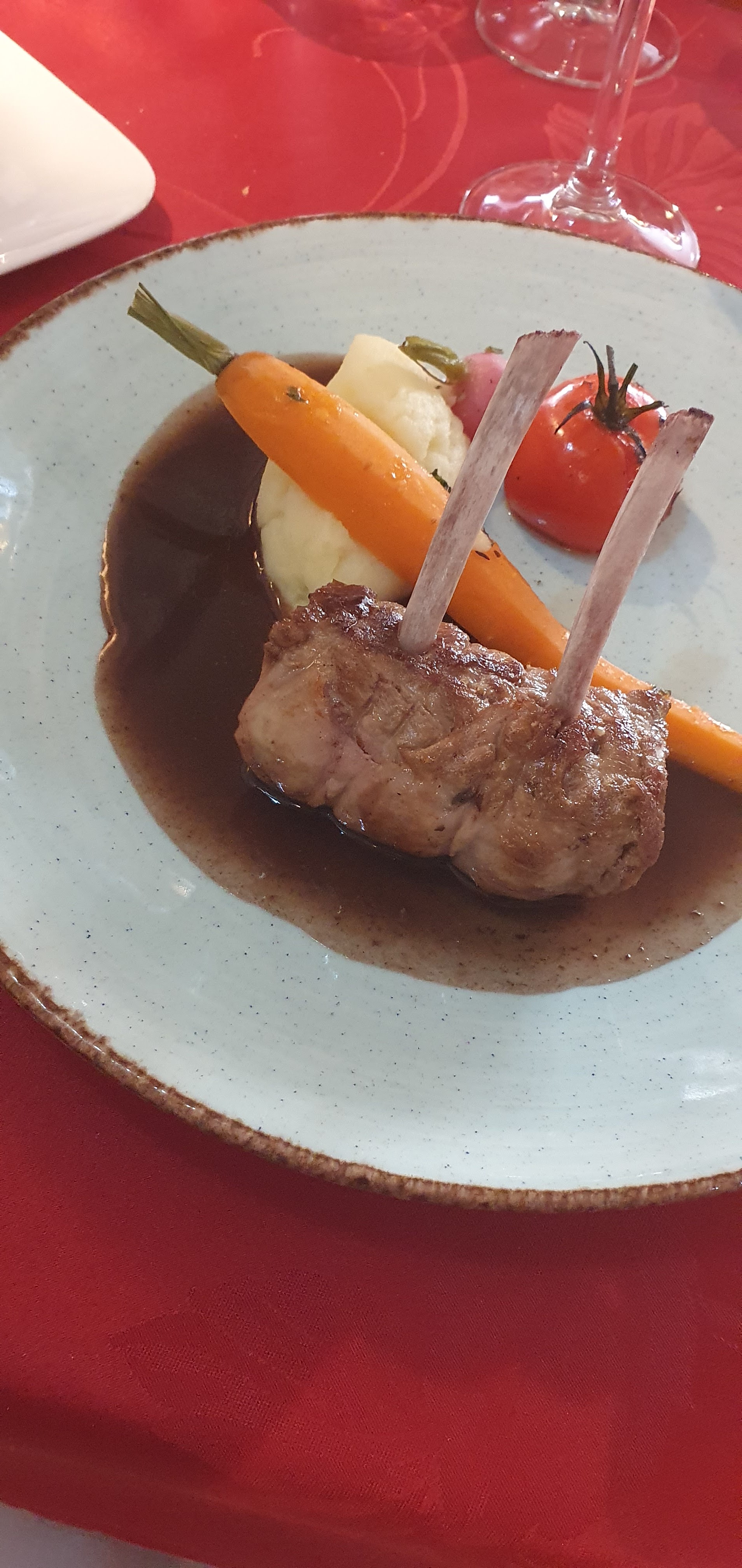 un bon resto de vieux qui ont certainement oublié ce qu’est un magret de canard ! certainement pas un bout de viande archi cuite accompagnée d’une purée au vin rouge, d’une pseudo ratatouille aux légumes crus et de pomme soi-Disant au cidre doux, le tout écrasé d’une sauce noire, à base d’un vin qui n’a rien à voir avec du cidre doux. Àu secours ! À éviter IM PE RA TI VE MENT