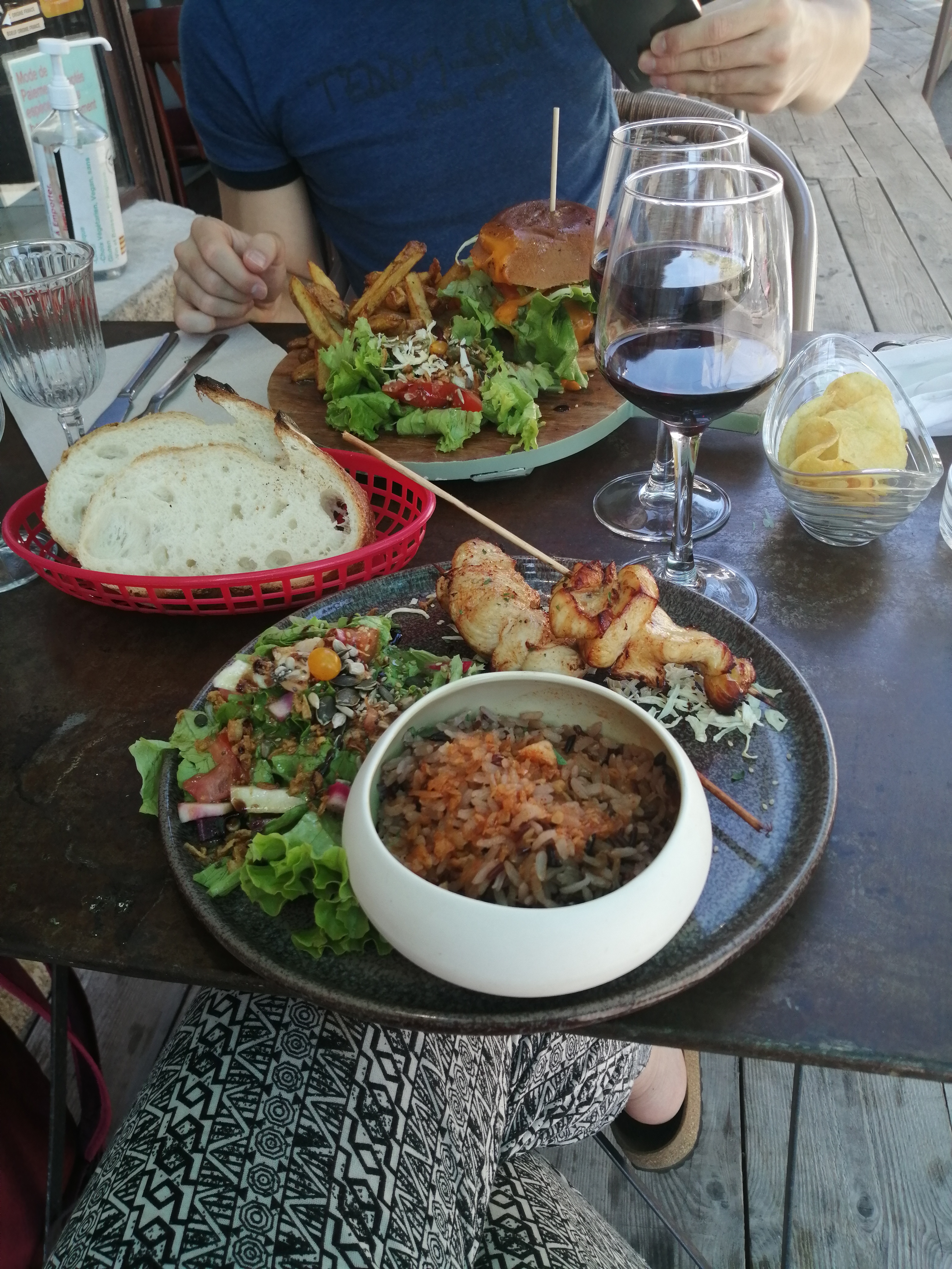 Repas un dimanche soir en terrasse, accueil sympa, cuisine avec des produits frais et locaux pour la plupart. Côtelettes d'agneau riz-ratatatouille, burger végétarien, salade végétarienne et nous nous sommes régalés avec le crumble abricots. Bravo à l'équipe.