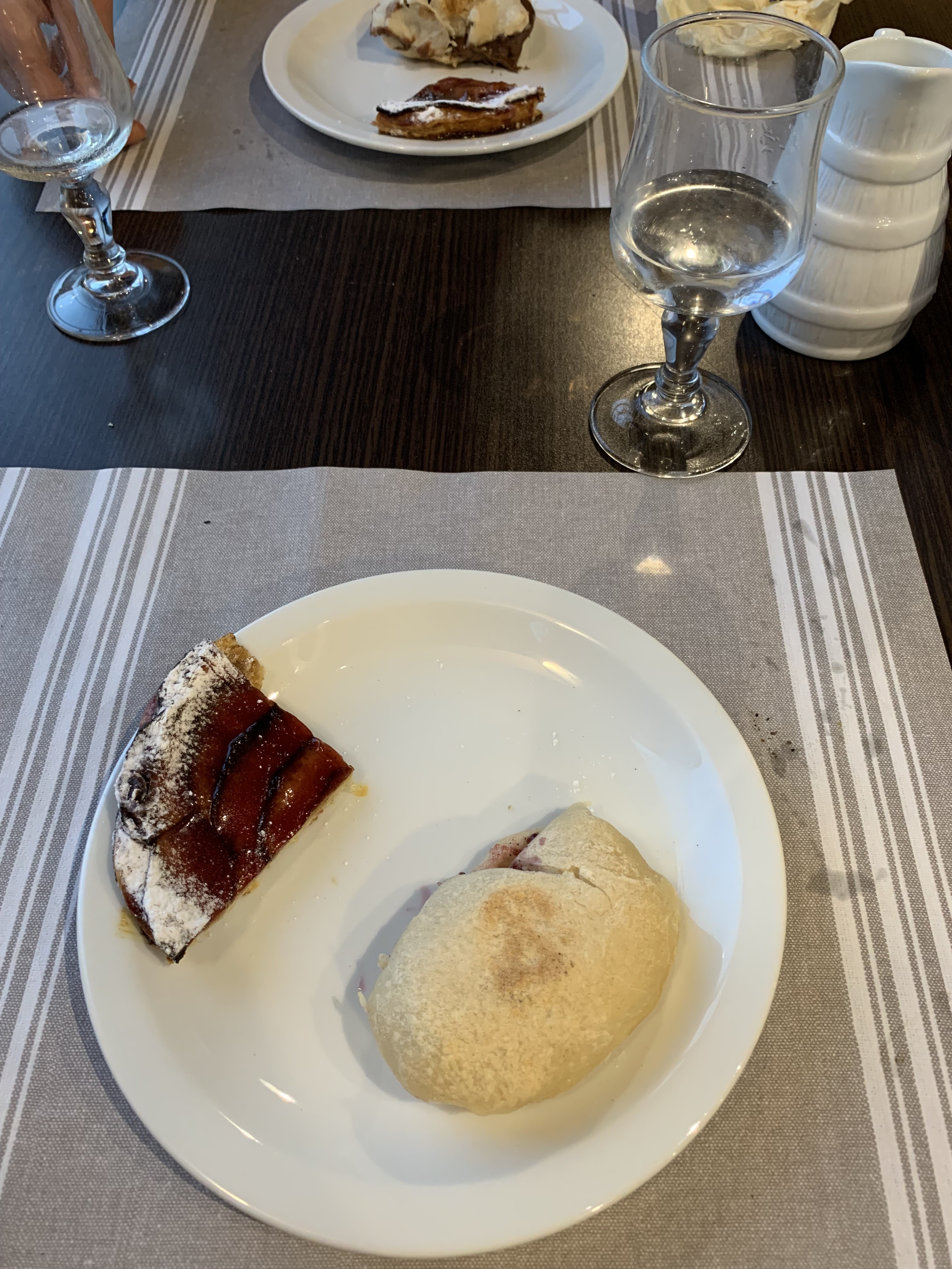 C'est si bon ! Terrasse conviviale, évidemment on a bien mangé, c'est bon de la tarte flambée au dessert. Et les fouées, ma foi : roooh c'est surnaturel tellement c'est bon.
