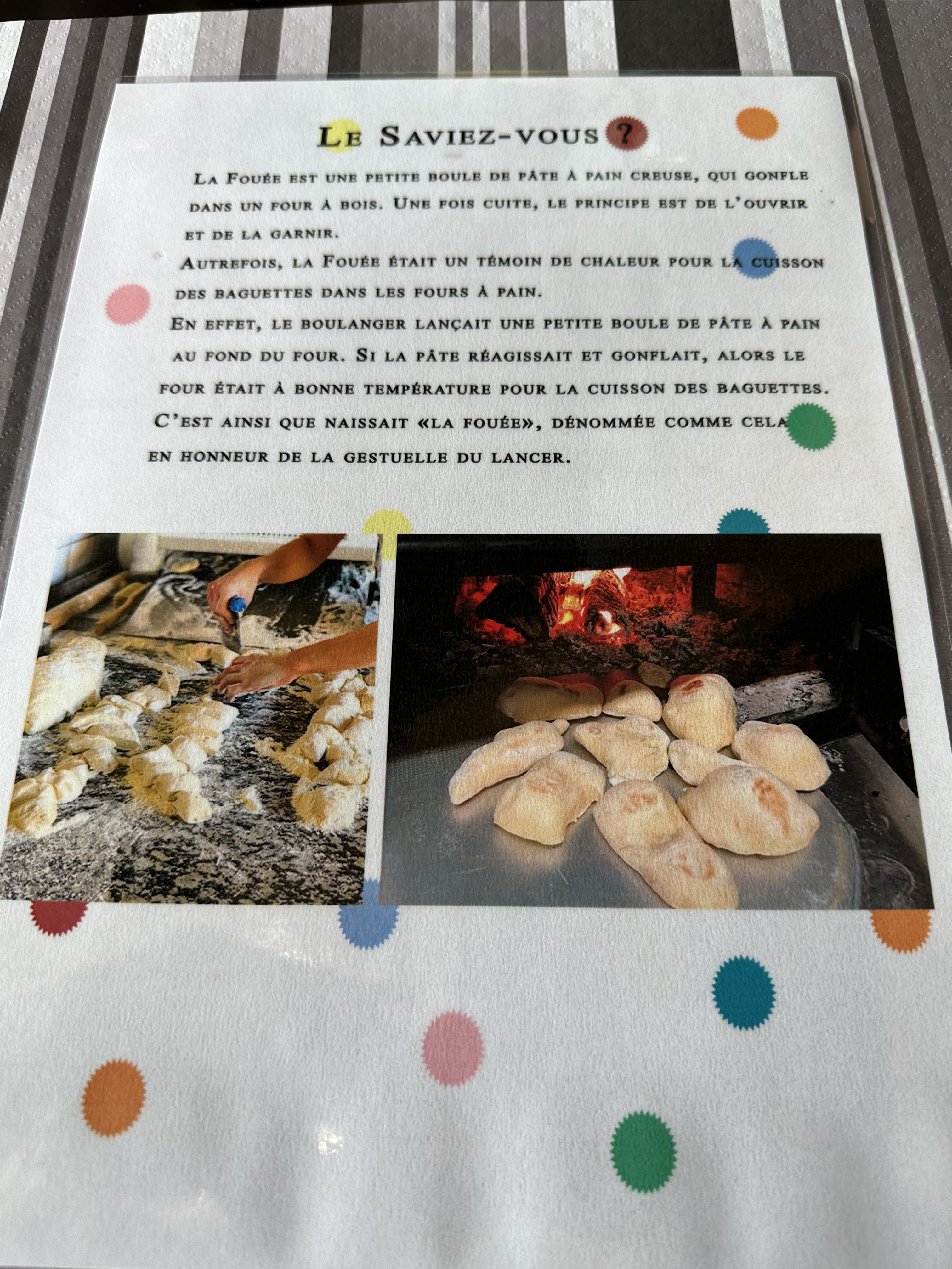 L’idée est originale , proposer un menu unique où la fouée (petit pain soufflé cuit au four à bois) est à l’honneur . Vous la garnissez vous même. Par contre l’idée est intéressante SI les garnitures sont de qualité. Ce n’est pas le cas. Rilleltes bas de gamme , kebab annoncé comme cuisiné mais ce n’est pas le cas et la viande est de mauvaise qualité aussi . Quant au dessert 1/4 de tartelette et une mini fouée à la confiture . Bref une tartine mais sans beurre.