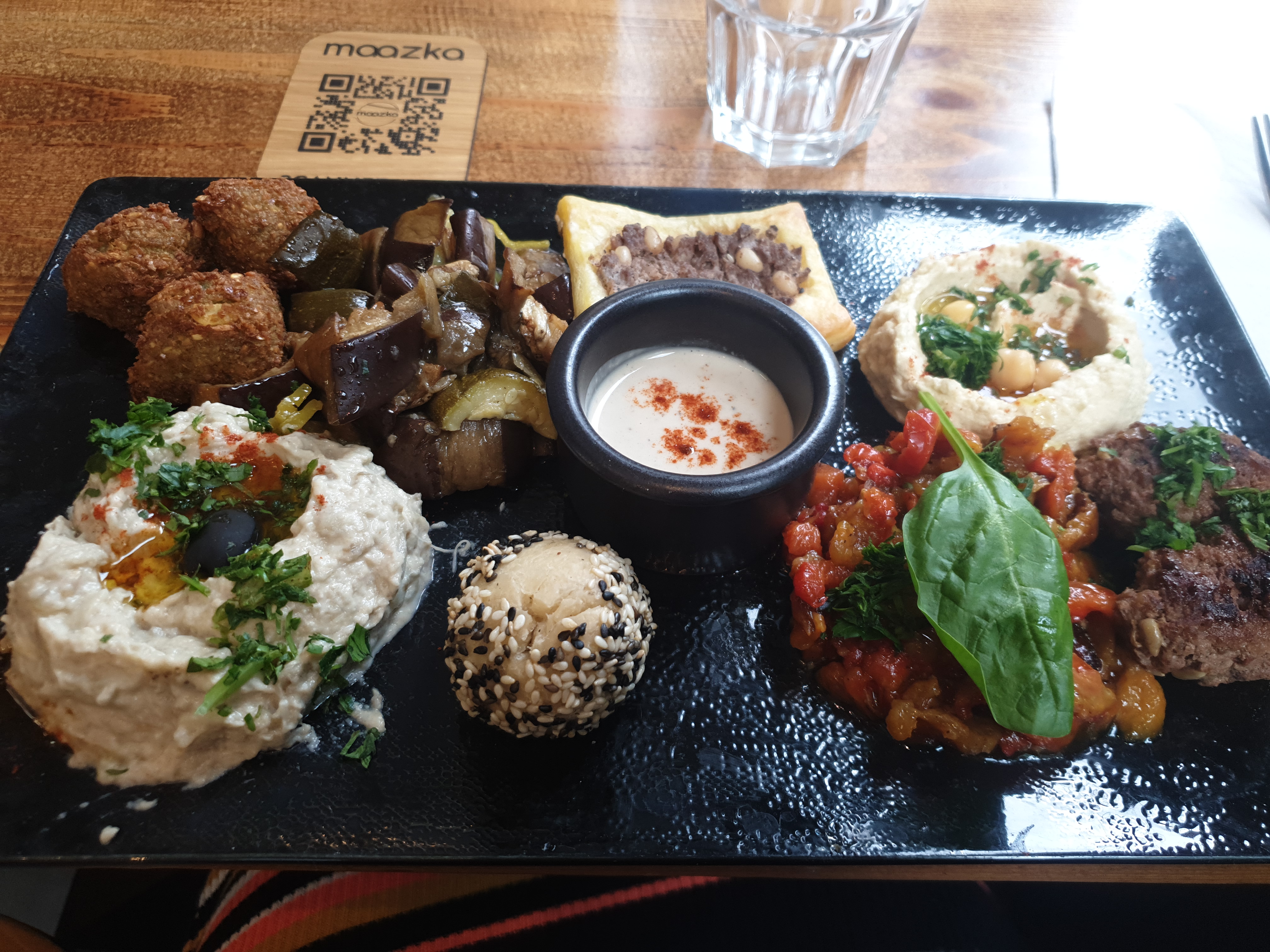 Un peu par hasard nous nous arrêtons chez Maazka... quel heureux hasard... accueil des plus sympathiques, service rapide et efficace... assortiment de mezze froids excellent + falafels au top + jus de pastèque menthe citron rafraîchissant et délicieux... une bonne adresse en centre-ville d'Aix