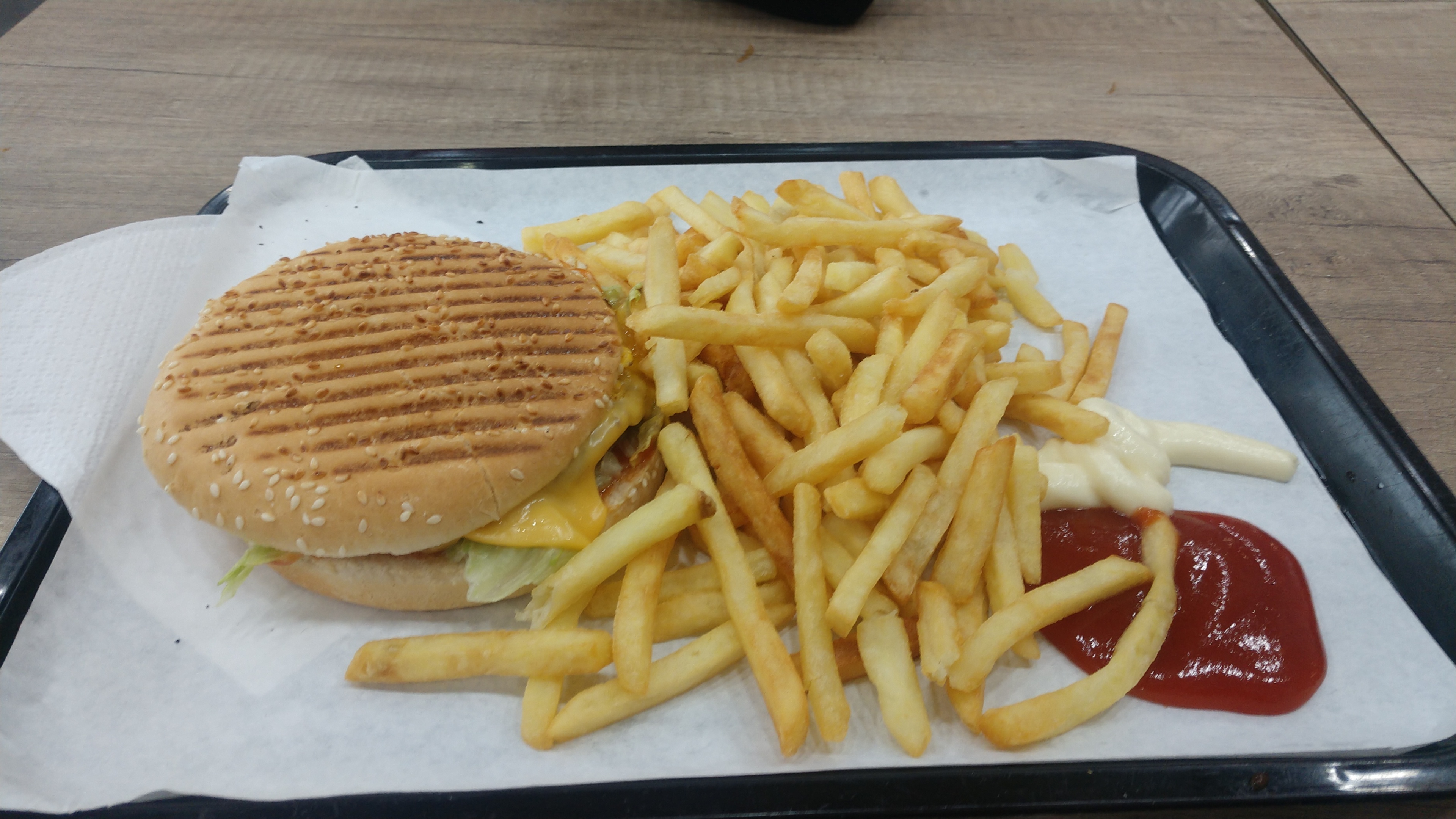 On.a commander ce midi avec mon mari et on a pris un menu enfant aussi , honnêtement on à l'habitude de manger dehors et la c'était vrai ment pas bon , le grec la viande était pas bonne avec des bouts grillés, le tacos n'étais pas du jour , très sec rien n'était savoureux, très déçu, on espère ne pas avoir mal au ventre .