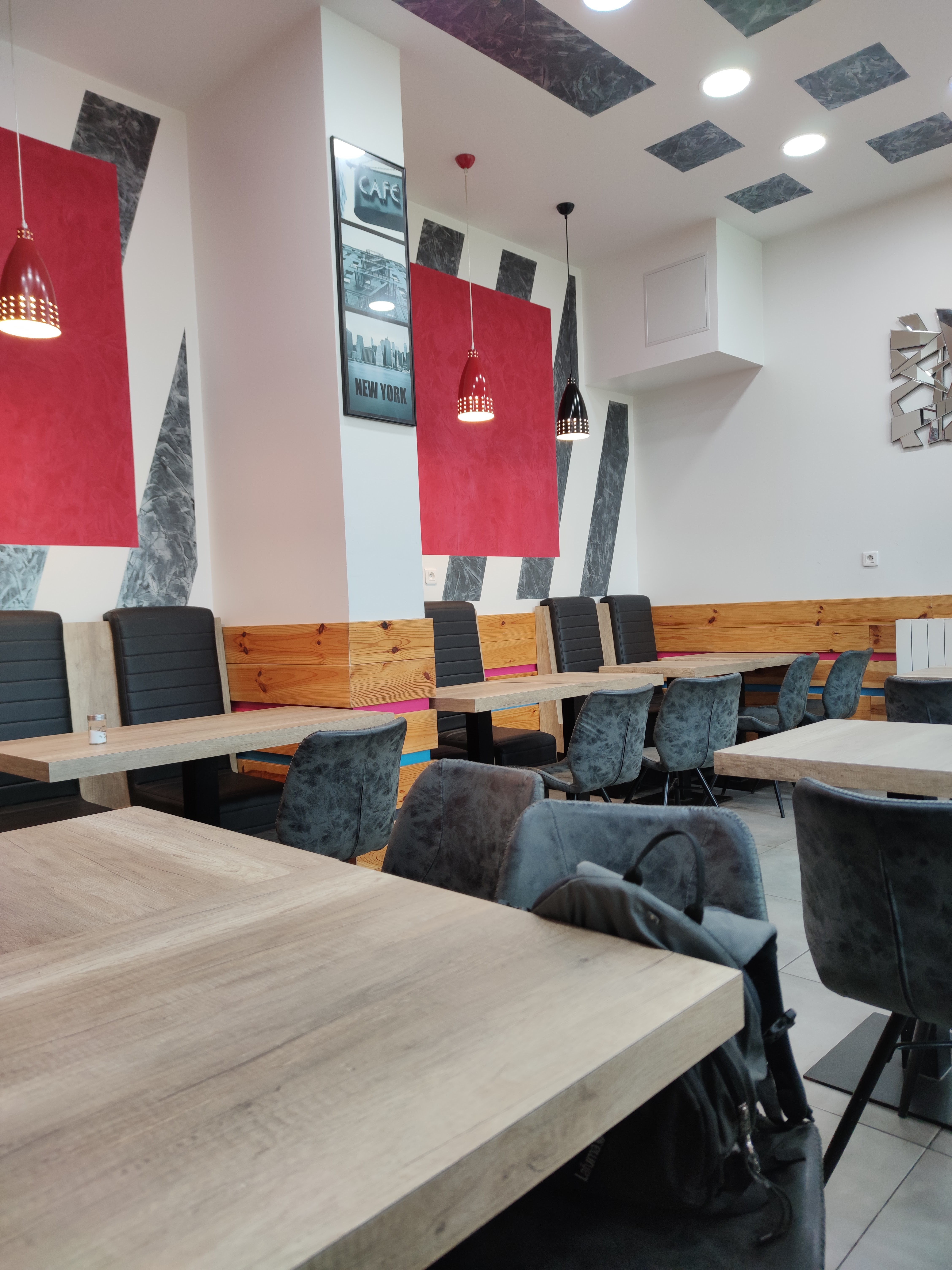 Lieu agréable, la salle est grande et la décoration est jolie, la carte est immense, ça va du simple kebab aux tacos, crêpes sucrées et salées, pizza et j'en passe. Mention spéciale à la pizza en taille giga, c'est une immense pizza idéale à plusieurs ou pour des évenements. La qualité est au rendez-vous, les pizza sont généreusement garnies et excellentes. En prime le personnel est souriant et très sympathique. Je recommande vivement !