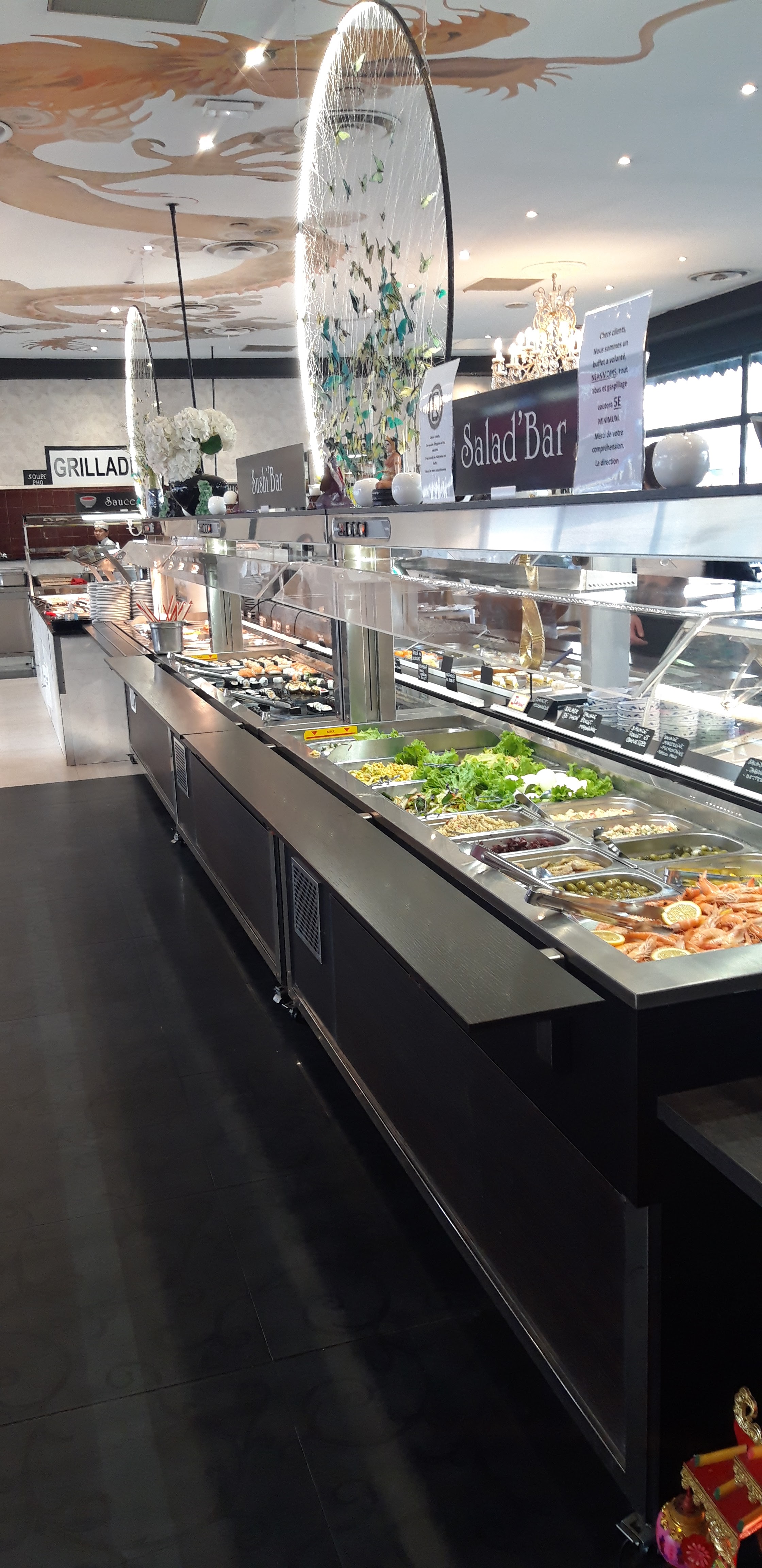 Un Buffet à Volonté avec une belle déco des plats asiatiques variées possibilité de faire un wok et un barbecue avec des prix abordables.