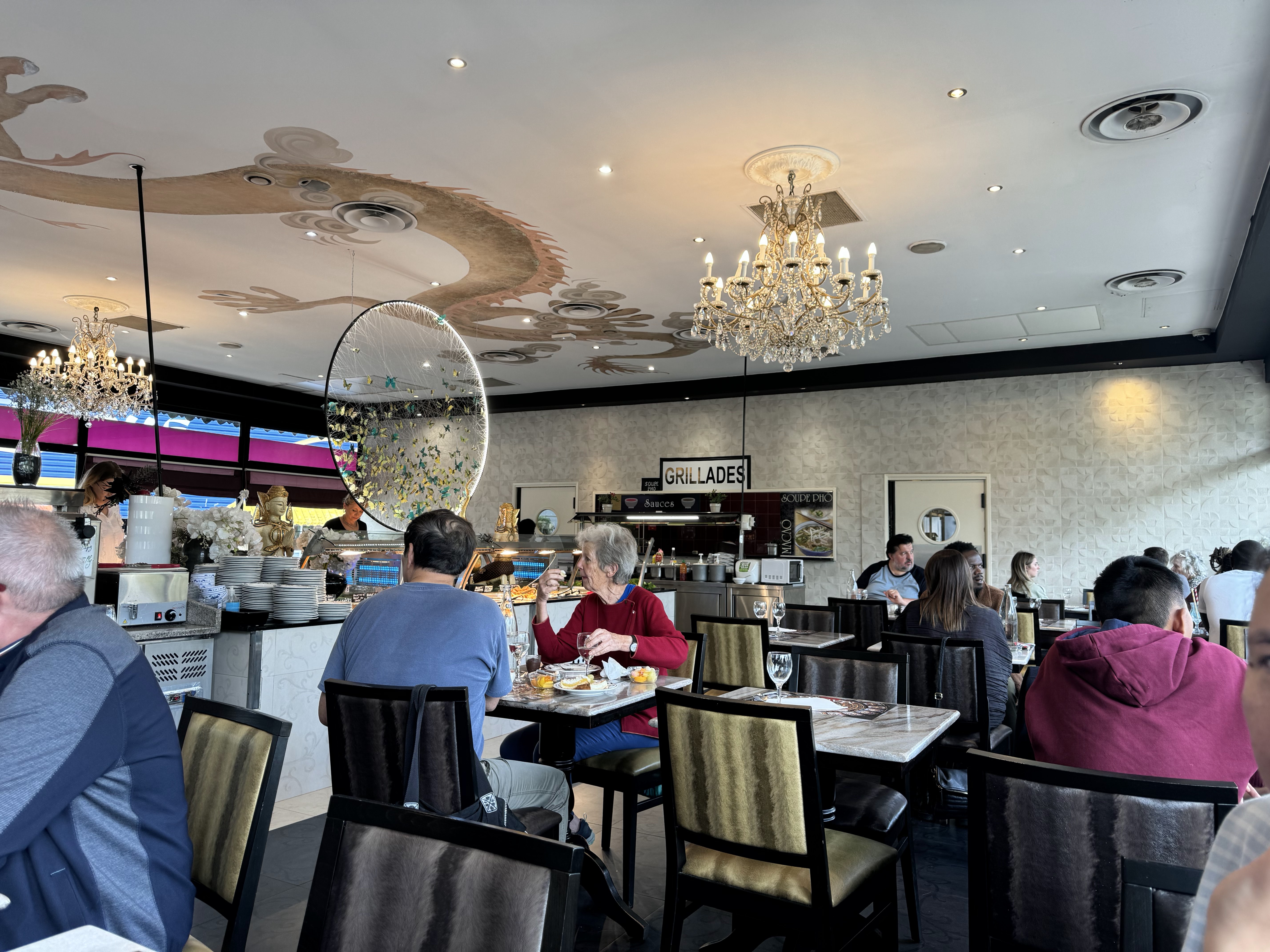 Beaucoup de choix, un prix unique (14 € midi et 19 le soir du lundi au vendredi). Un personnel attentif, très poli. Mais aucune chaleur humaine autre que celle que vous apporterez. Leur site signale que boeuf et poissons sont certifiés hallal. Mais bon sang que c'est gras ! Je crois que nous n'y retournerons pas.