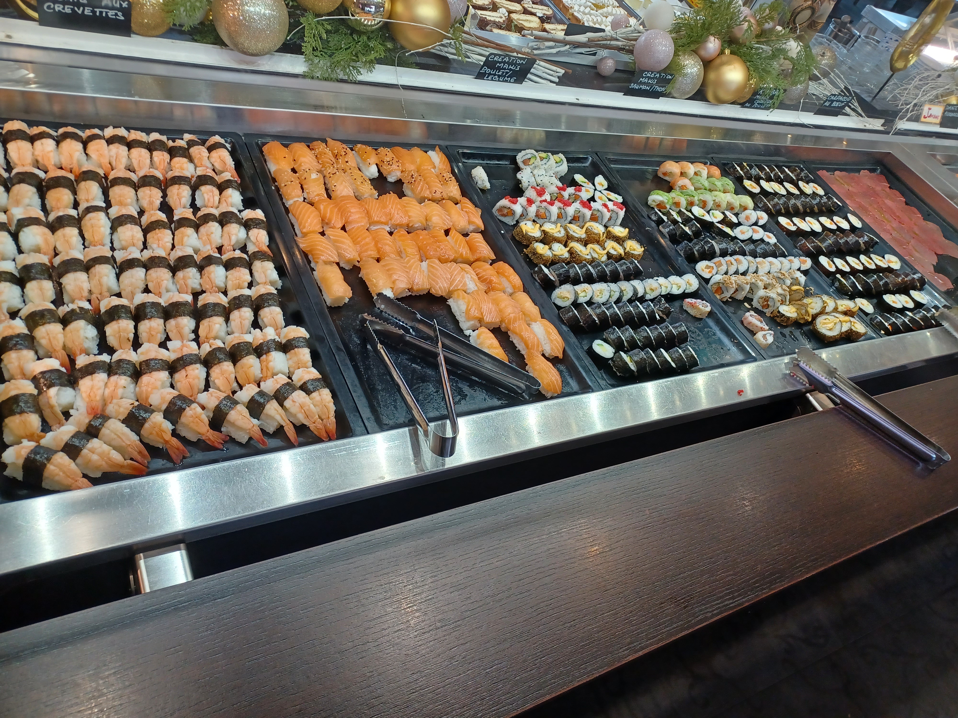 Buffet sans surprise. Arrivé vers 13h, certains produits n'étaient plus disponible par contre. (notament sur les desserts il restait presque rien à par les glaces) Du choix mais rien qui sorte de l'ordinaire. Le prix est correct.