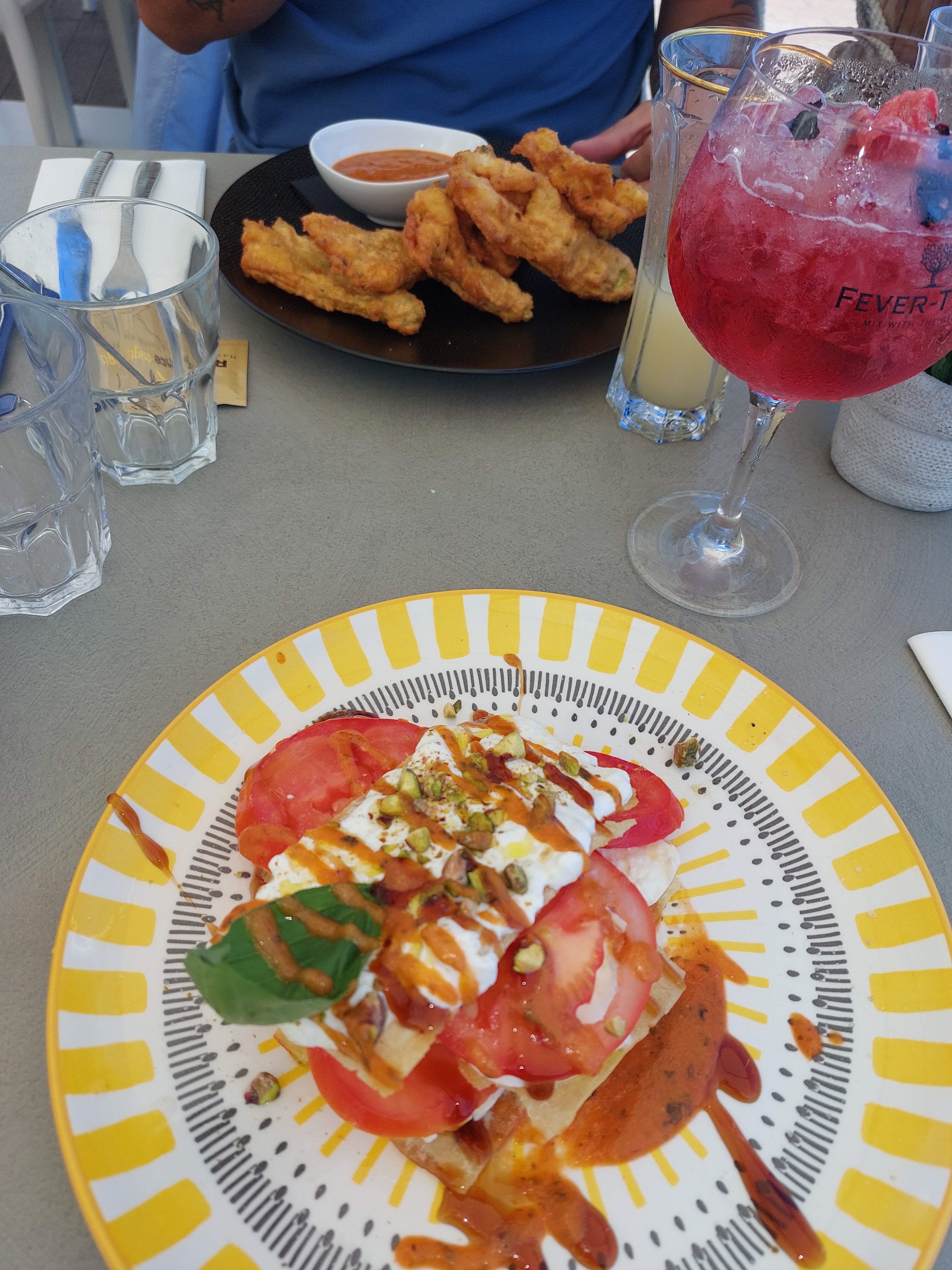 J’ai pu choisir à l’avance la table que je voulais lorsque j’ai réservé, ce qui est en soi une commodité très plaisante. Le personnel, aux petits soins, s’évertue à rendre votre expérience agréable. L’établissement fait face à la mer et il est décoré avec goût dans des tons de bois et de blanc qui lui confèrent une ambiance bohème/chic relaxante. Quand la nuit tombe, on se retrouve enveloppé dans une lumière chaude et tamisée et on se laisse bercer par le reflet des étoiles sur l’eau. On a la possibilité de passer du côté restaurant à la terrasse quand on en a envie pour boire notre verre, et par ailleurs, il est très agréable de dîner dans un établissement qui n’a pas vraiment de « mur » lorsqu’il fait chaud, on profite de l’ombre et de la fraîcheur sans être coupé de l’extérieur. En gros, c’est assurément un endroit où on se sent bien, à la fois beau et chaleureux. La carte est originale, les plats savoureux et mis en valeur de façon esthétique. De plus, les cocktails sont bien servis et les tarifs globalement raisonnables. Un des meilleurs rapports qualité/prix du coin. J’adore cet endroit.