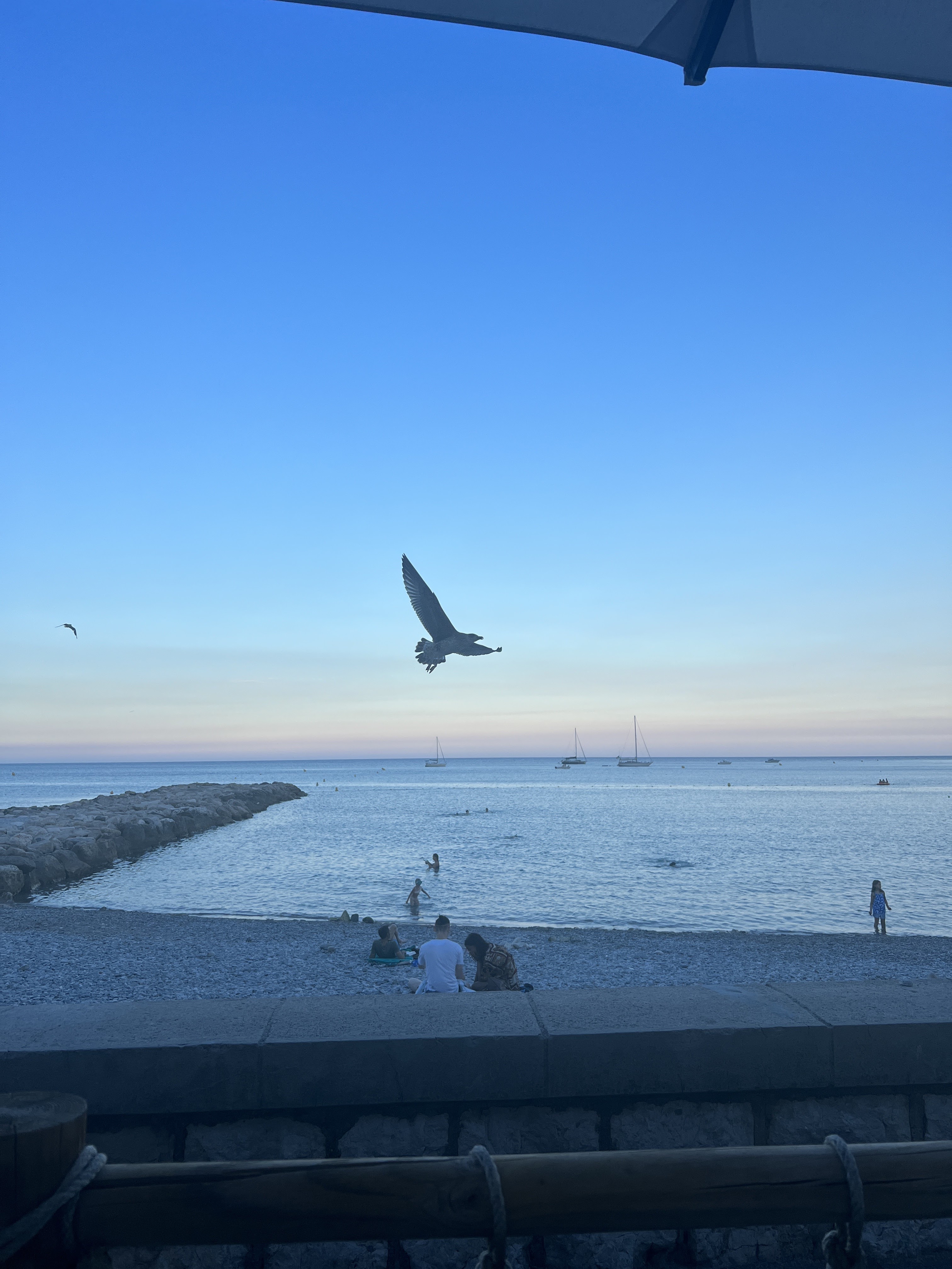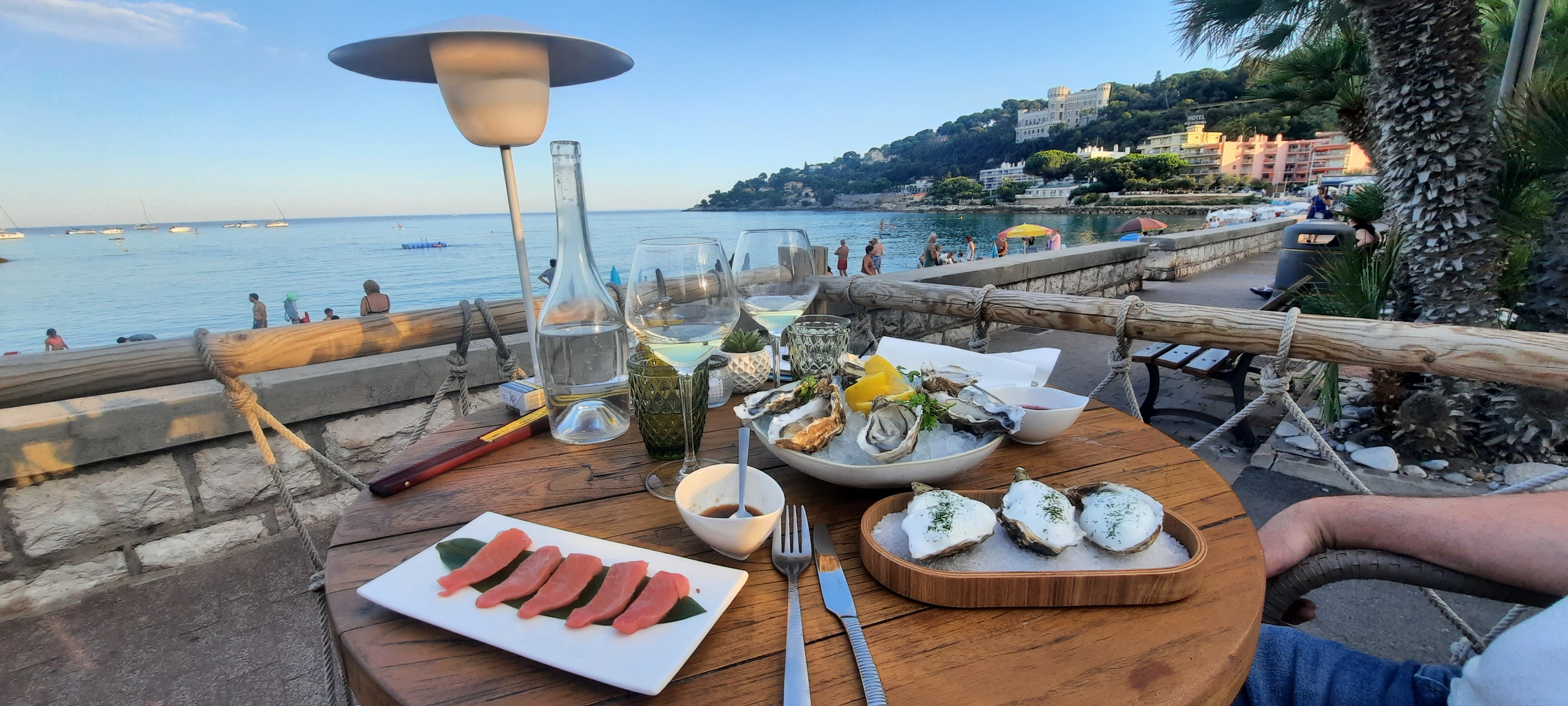 Un bel endroit , des serveurs souriants et sympas . Une belle carte , vins y compris . Nous nous sommes régalés. Avec en prime une belle vue mer et du soleil .foncez , c est certainement un des meilleurs restaurant de menton .