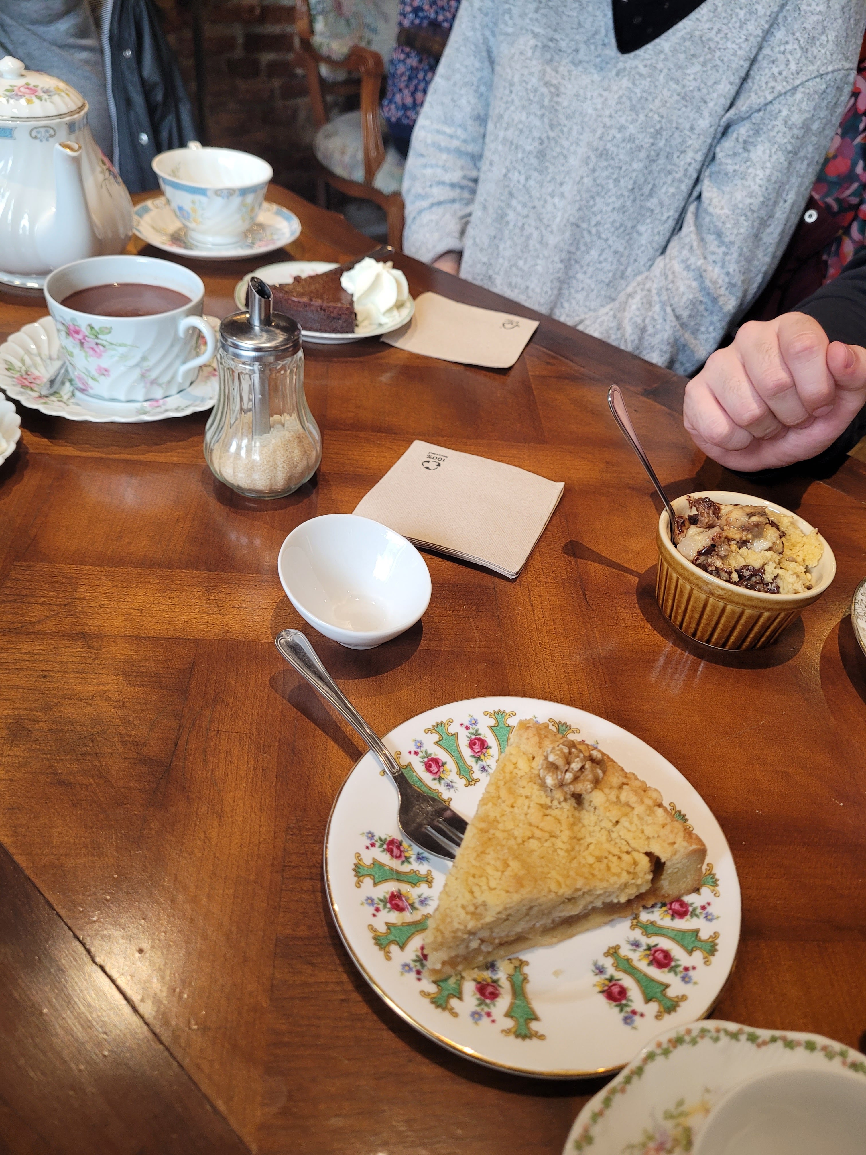 Petit café cosy et sympa, assez calme malgré le monde. La déco et les tasses vintage allaient bien avec l'ambiance. Les gateaux n'étaient pas trop sucrés et il y avait du choix pour le thé :)